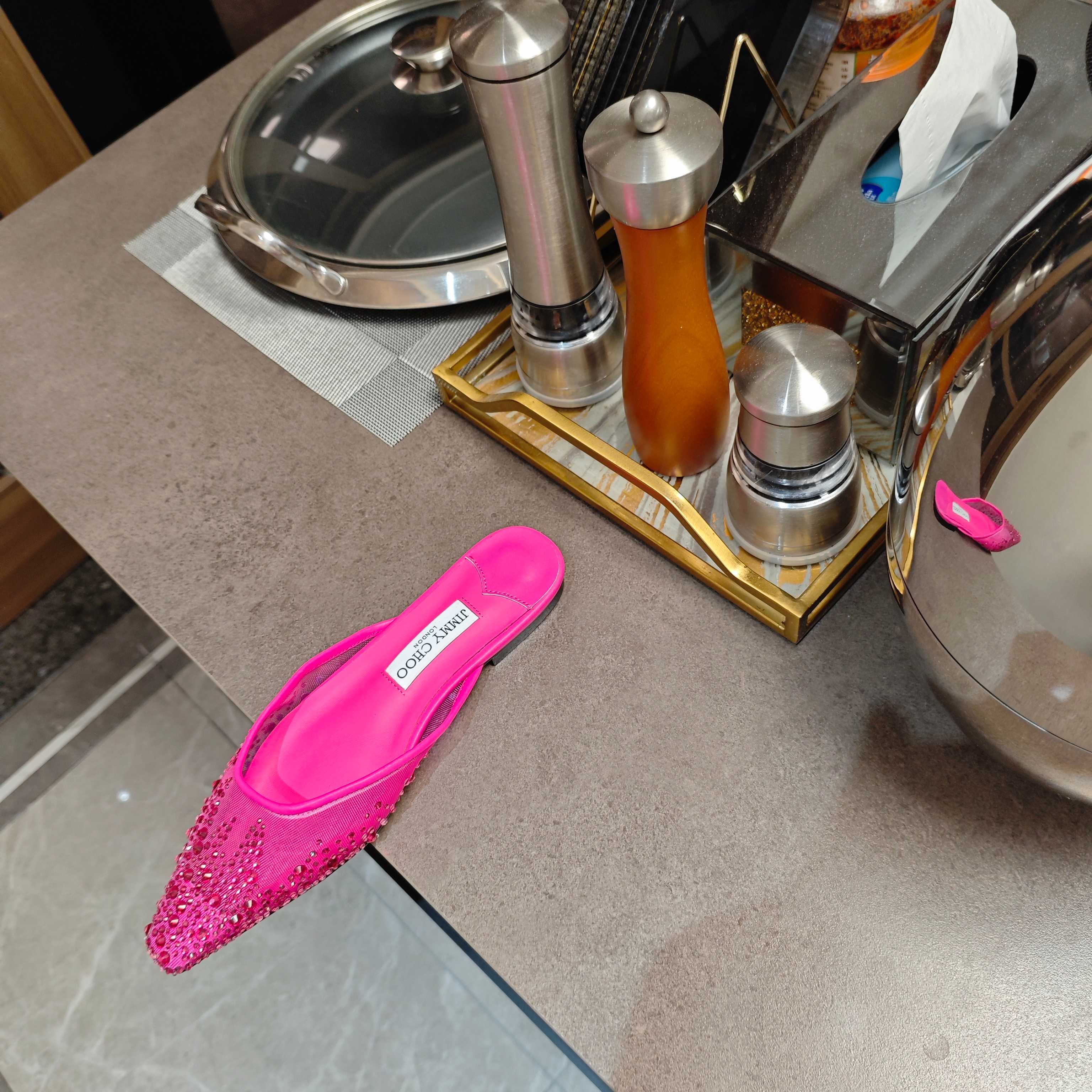 Jimmy 25 Mule Flats Deep Pink Mesh Gauze 240057