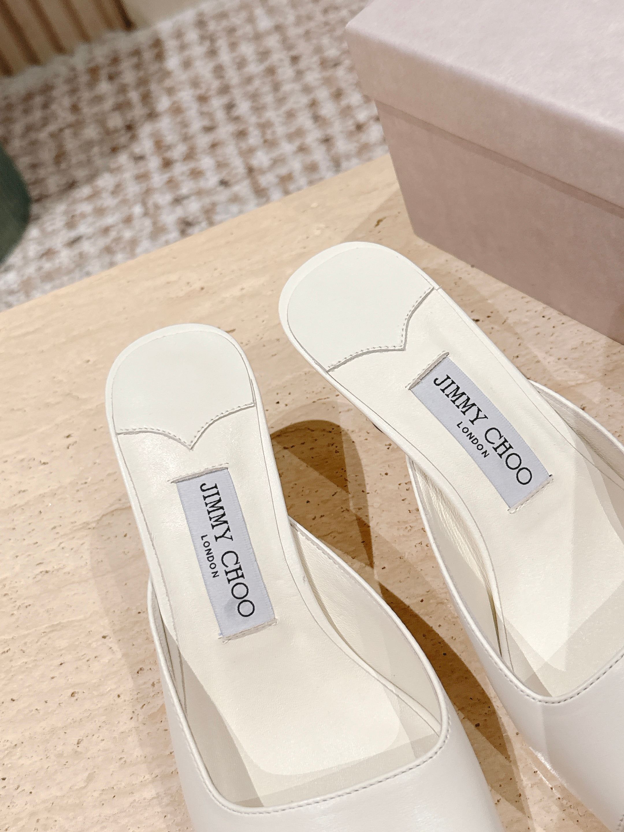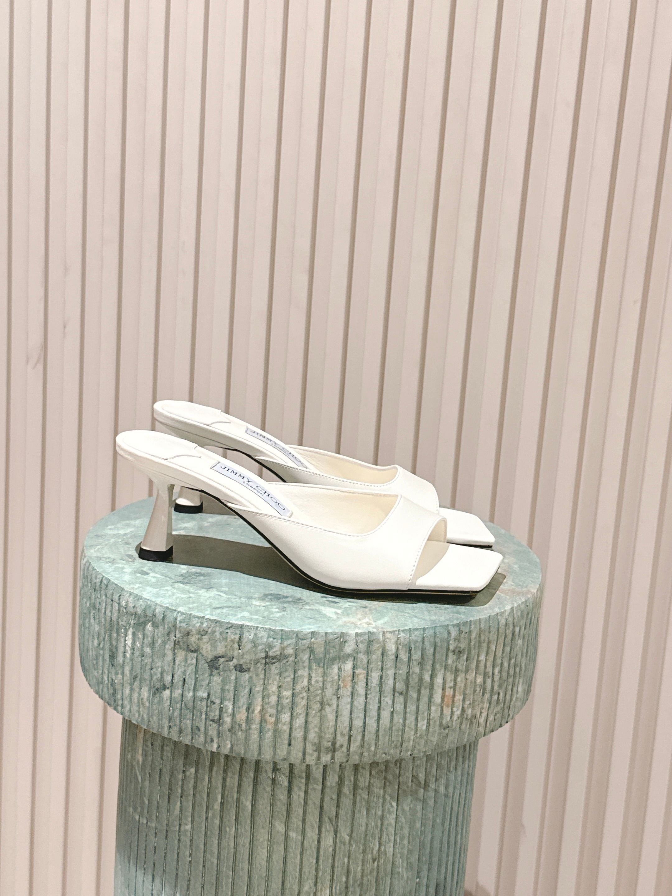 Jimmy 25s Skye Satin Mules 70mm White Leather 431871