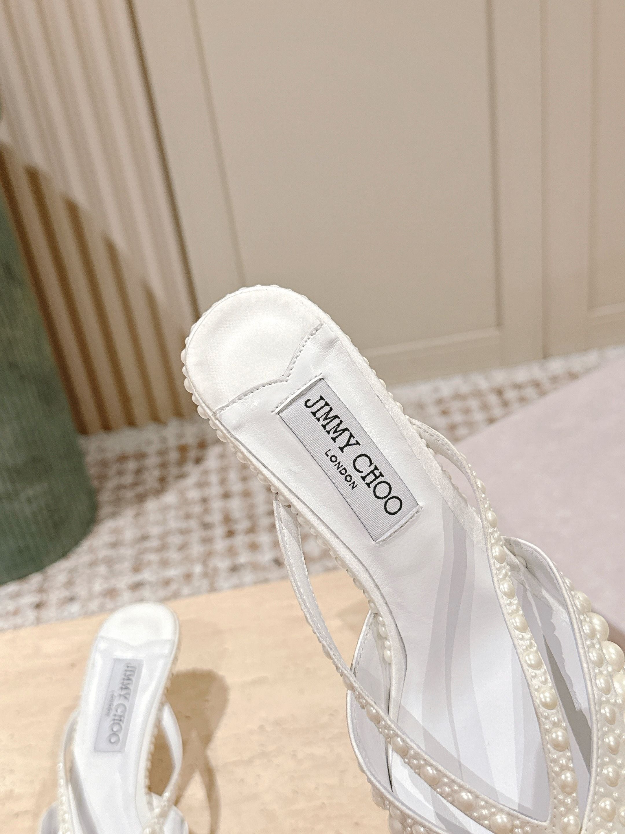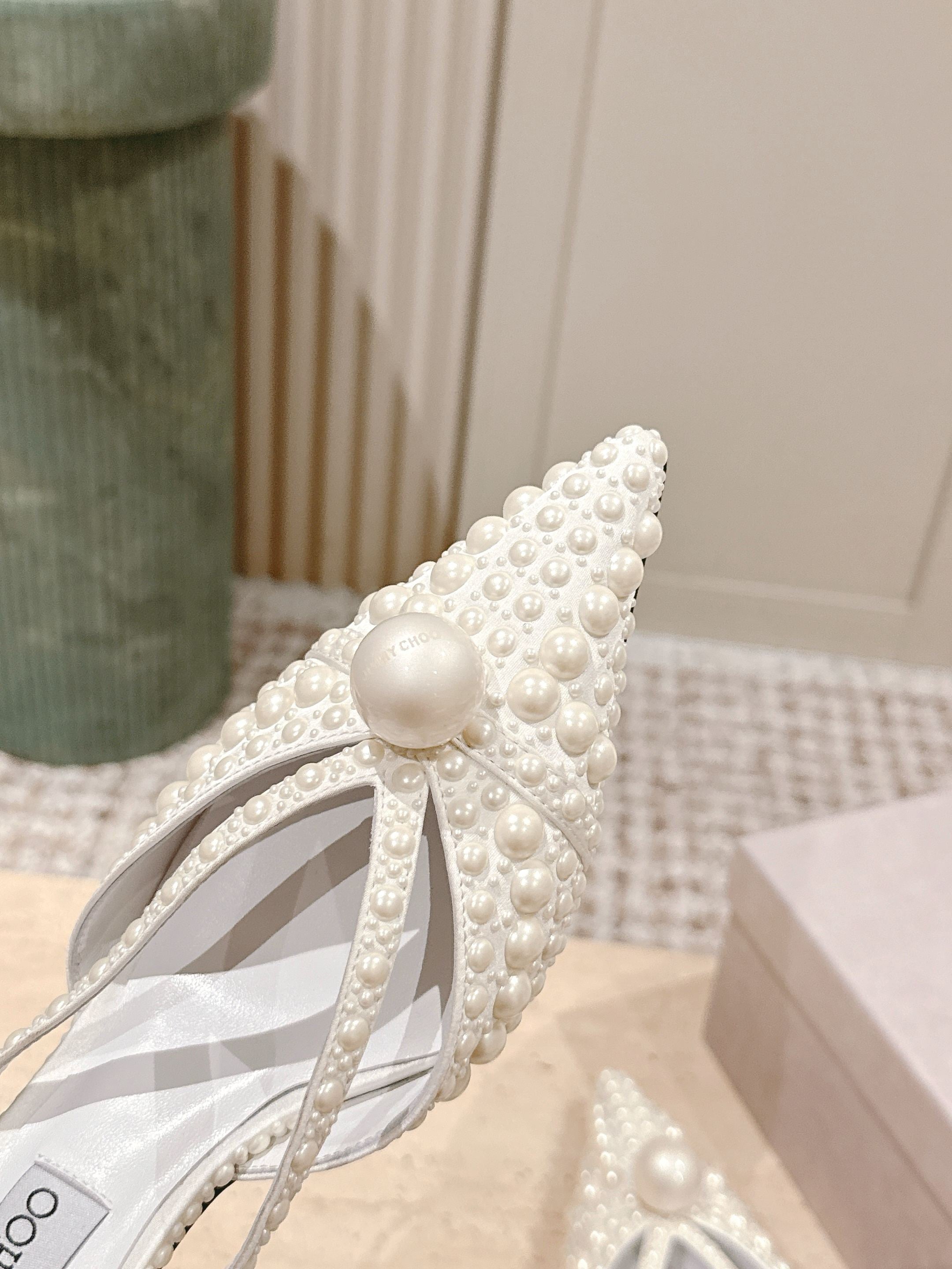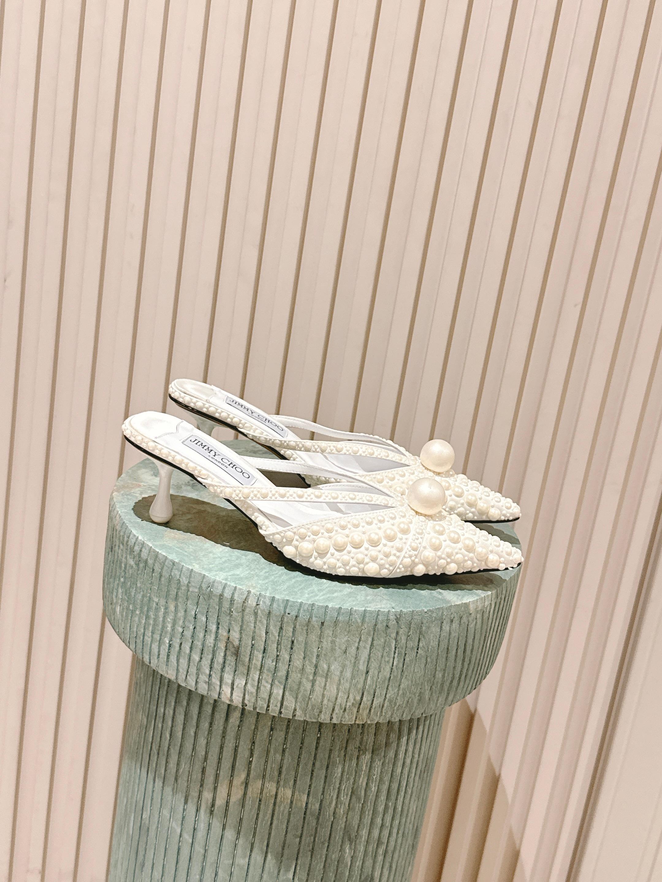 Jimmy All-Over Pearls Sana Mule 50mm White Satin Fabric 431840