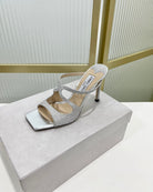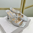 Jimmy Anise 85 In Silver Cowhide With Glitter Mules 587698