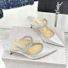 Jimmy Bing 65mm In White Silver Stone Studded Cowhide Mules 593194