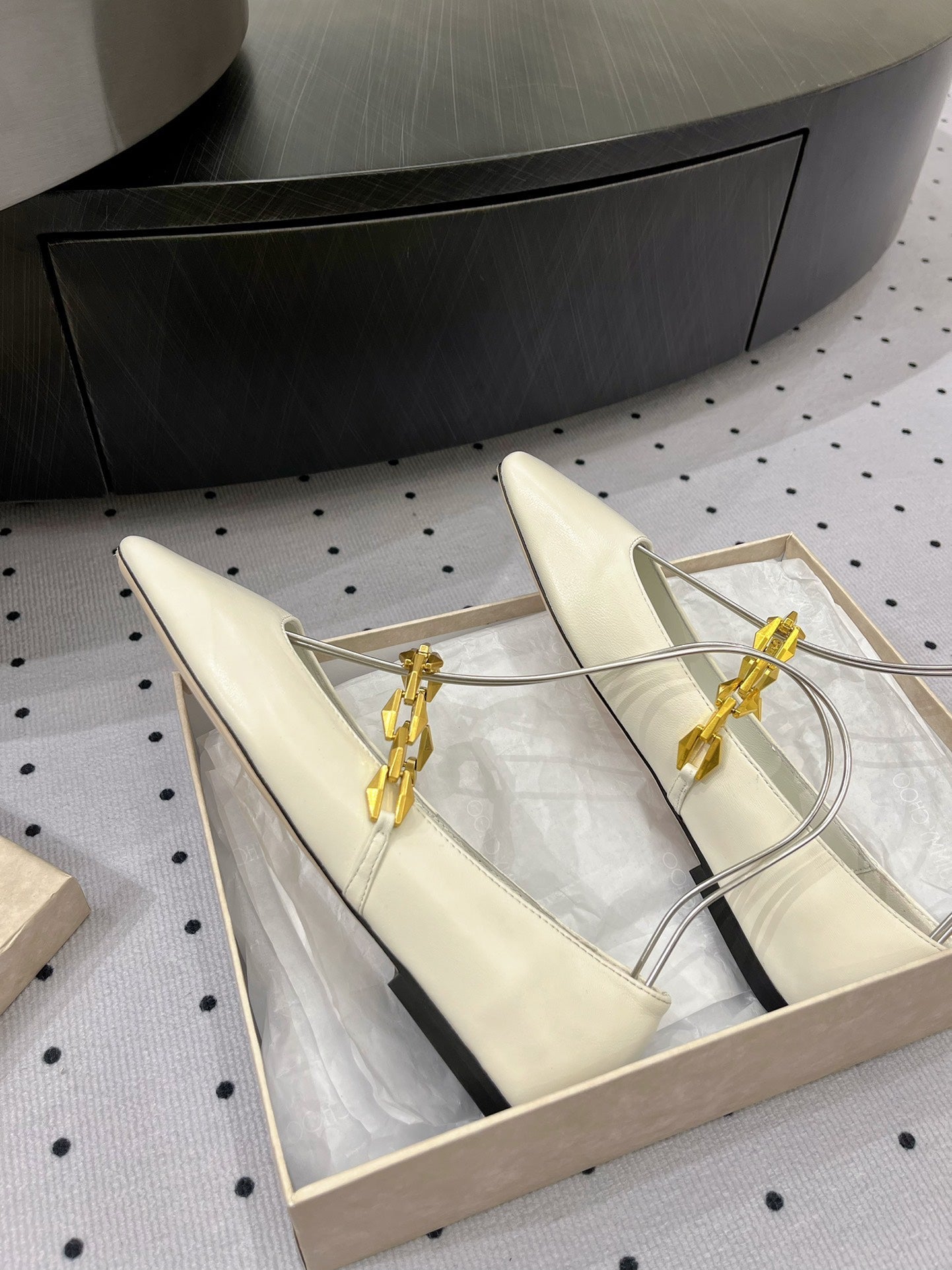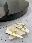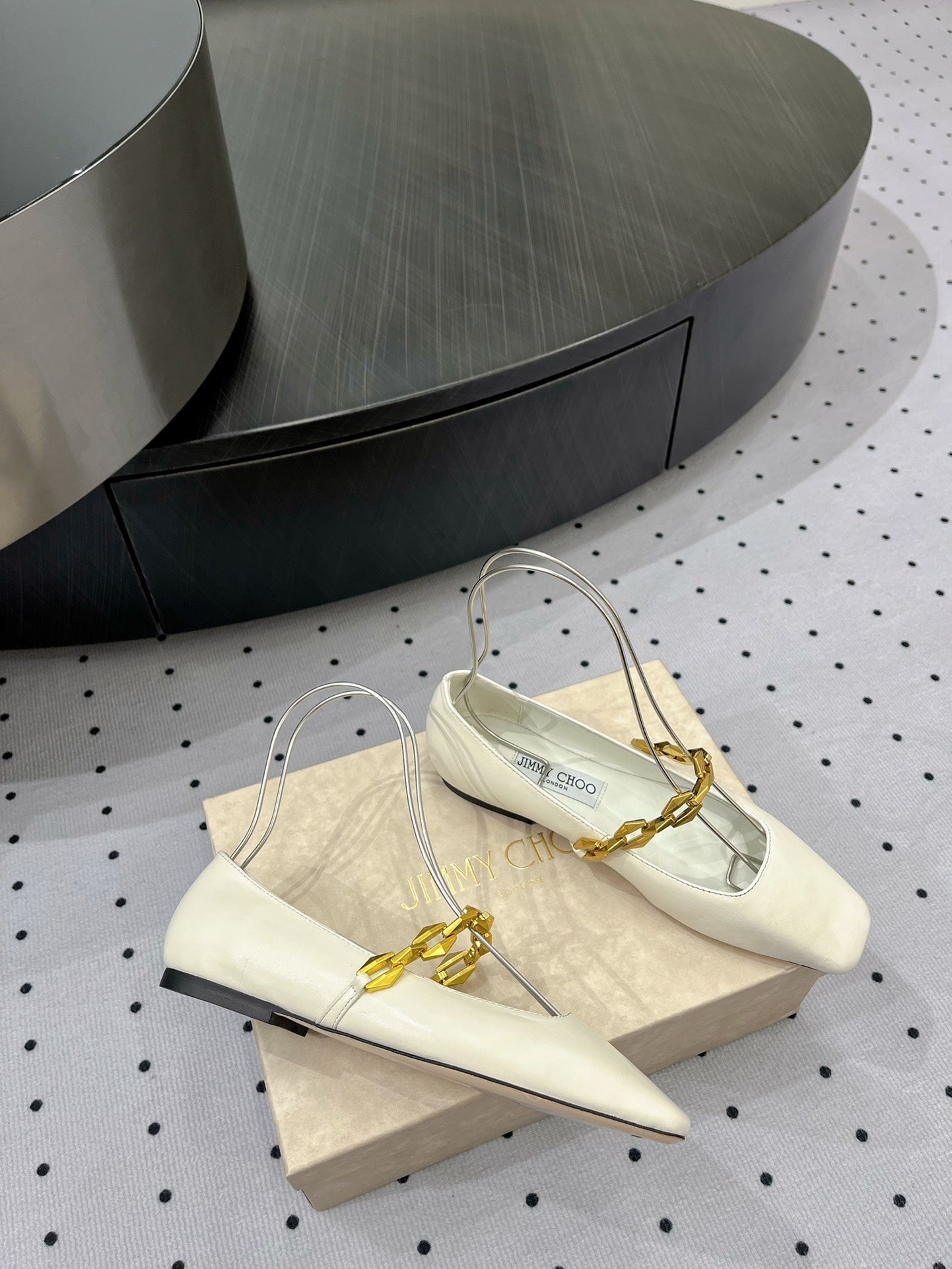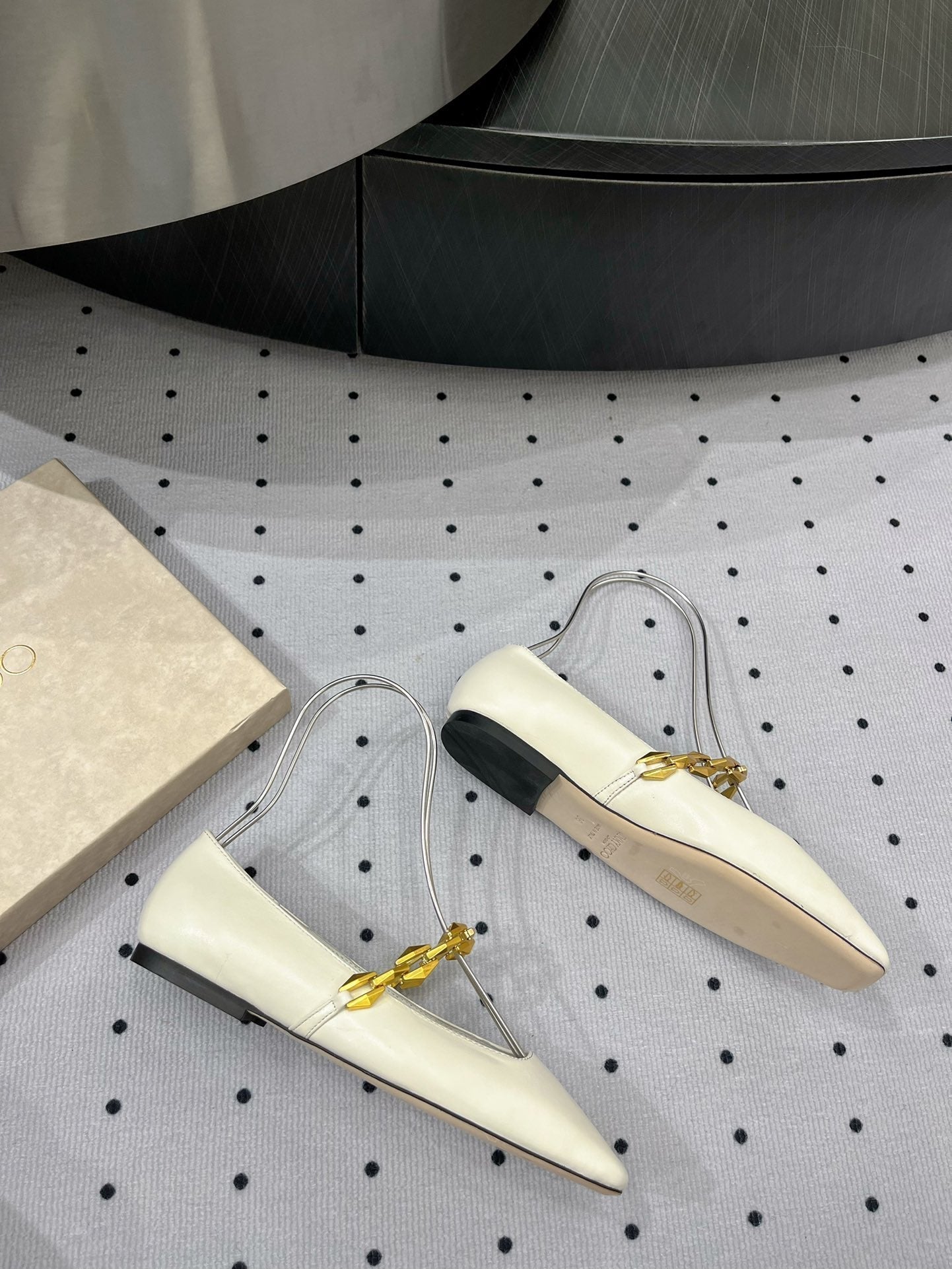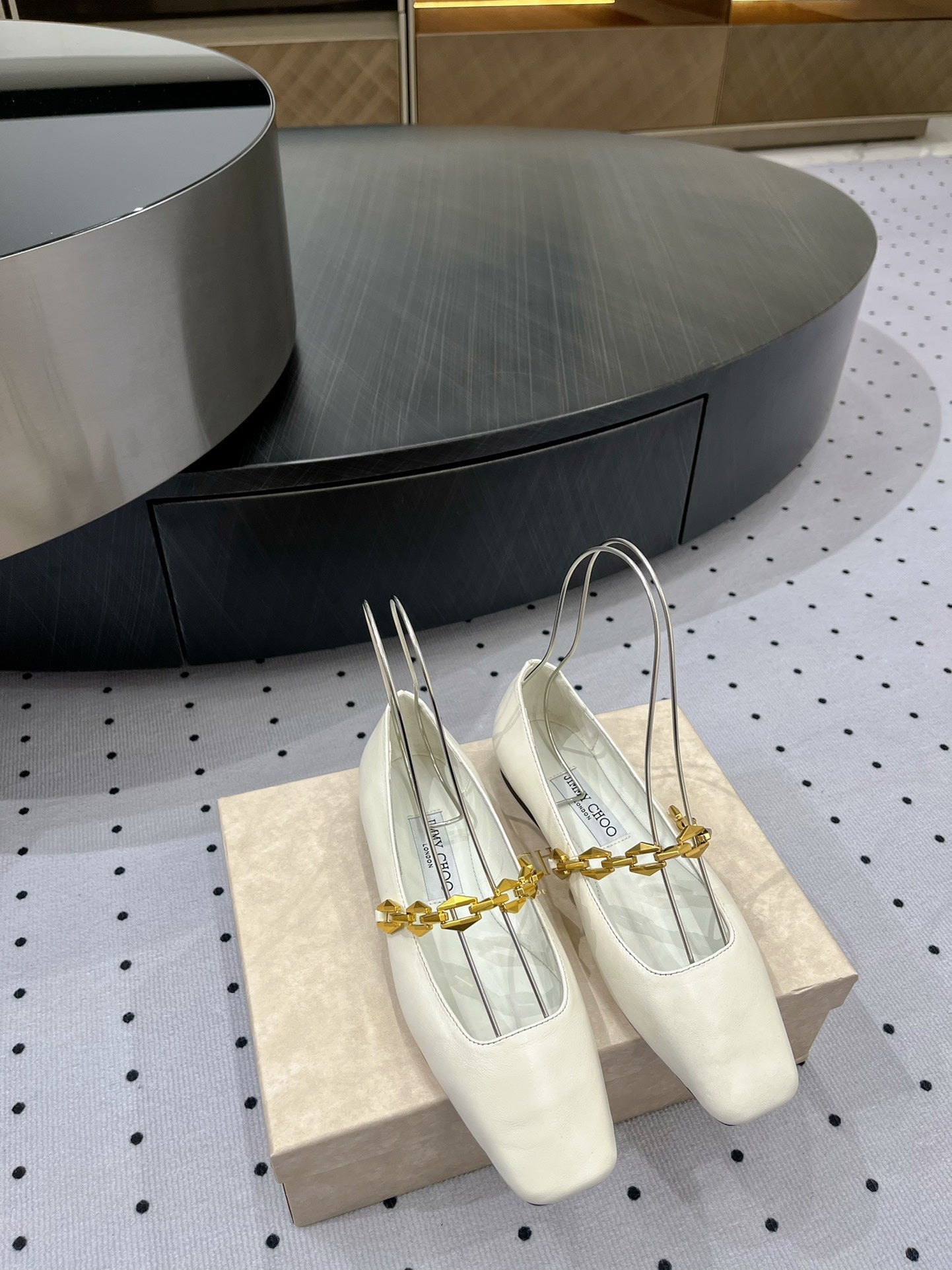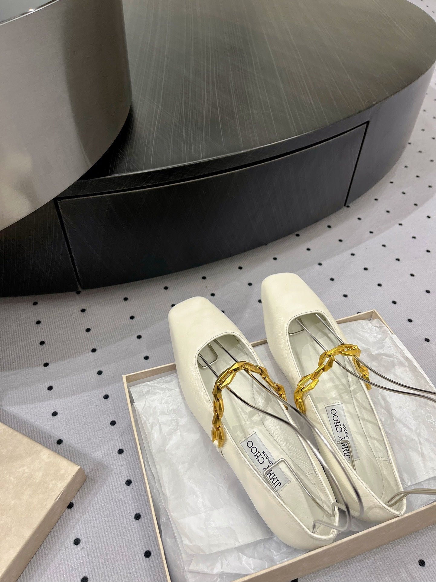 Jimmy Diamond Tilda Flat 10mm In White Nappa Leather Flats With Chain 591609