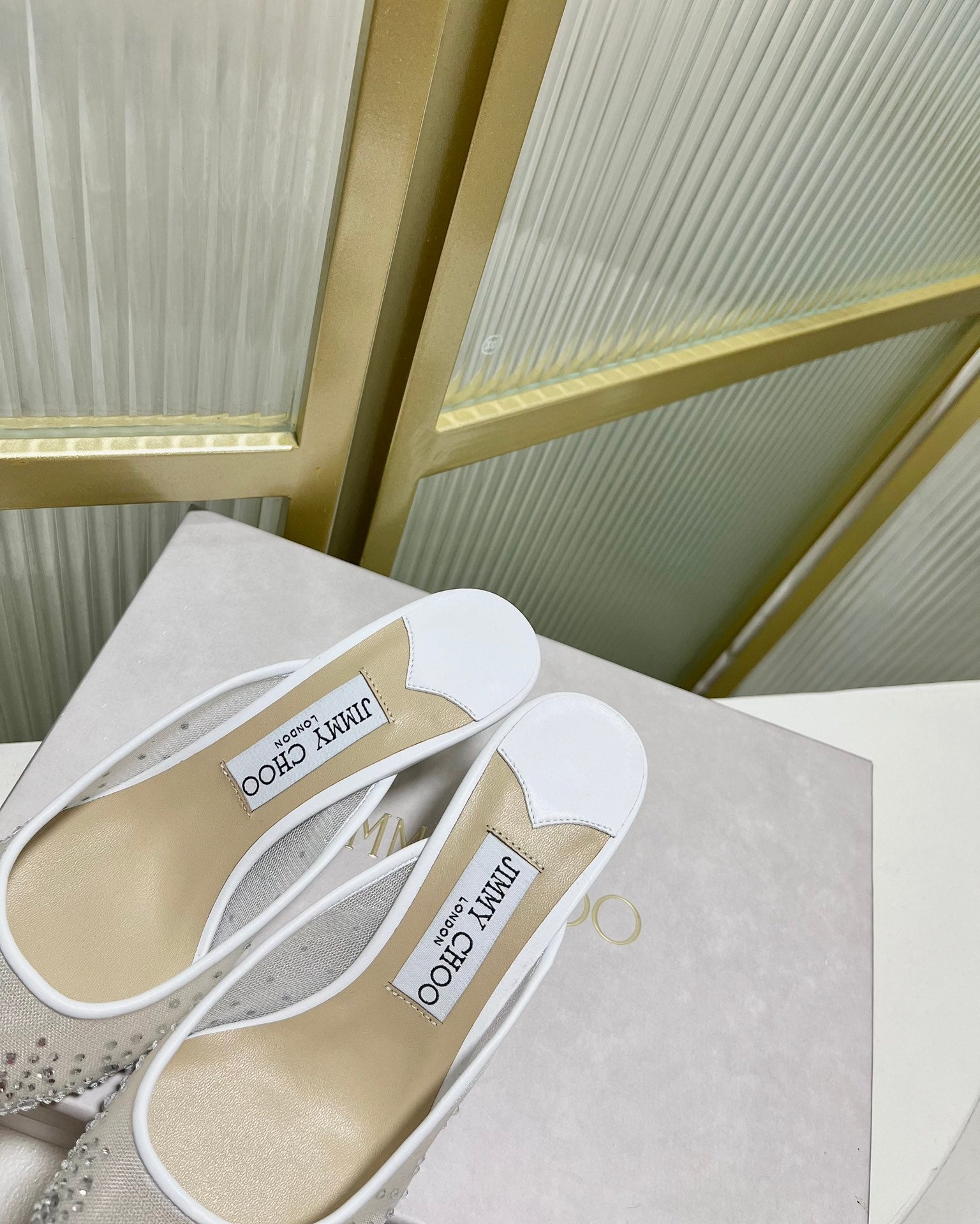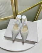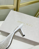 Jimmy Mule 65mm In White Mesh Fabric With Swarovski Crystal 597885