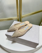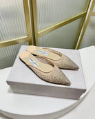 Jimmy Mule In Beige Mesh Fabric With Swarovski Crystal 597879