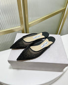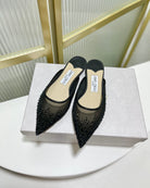 Jimmy Mule In Black Mesh Fabric With Swarovski Crystal 597874