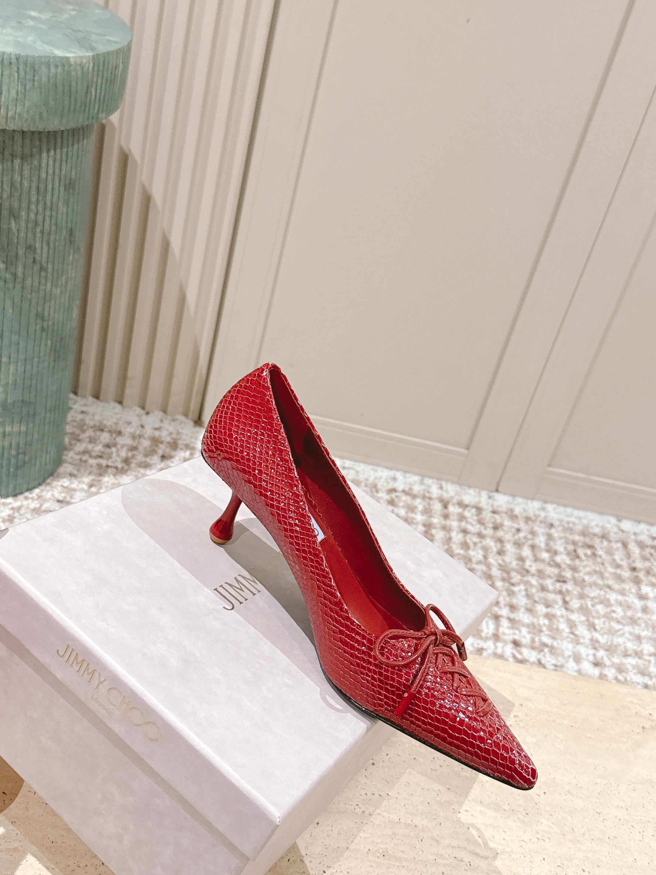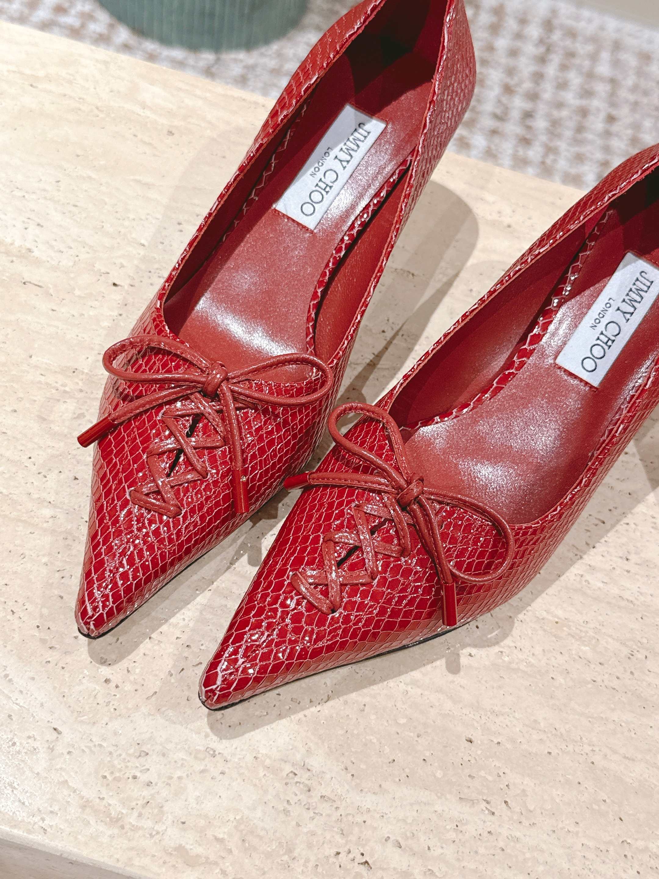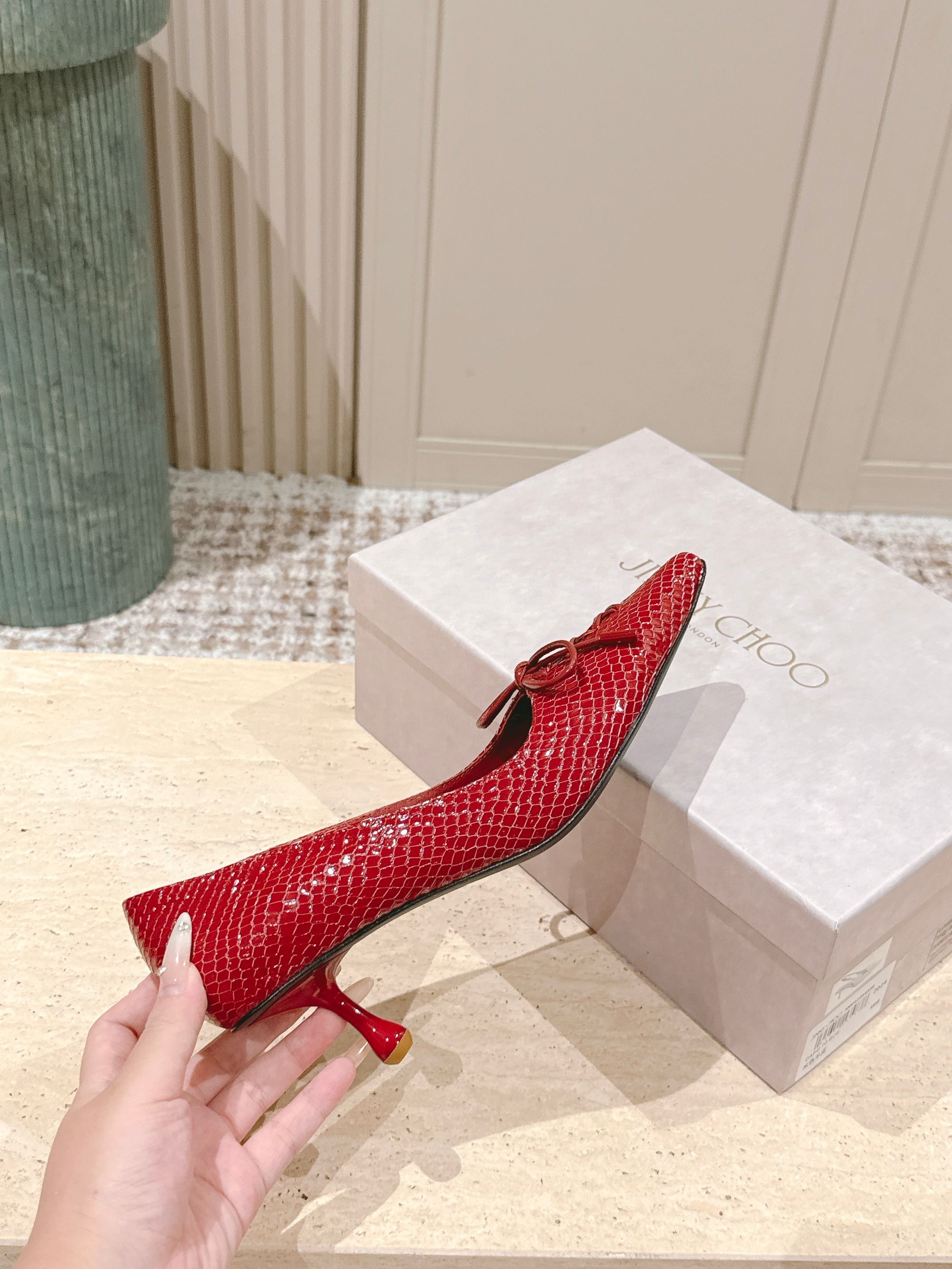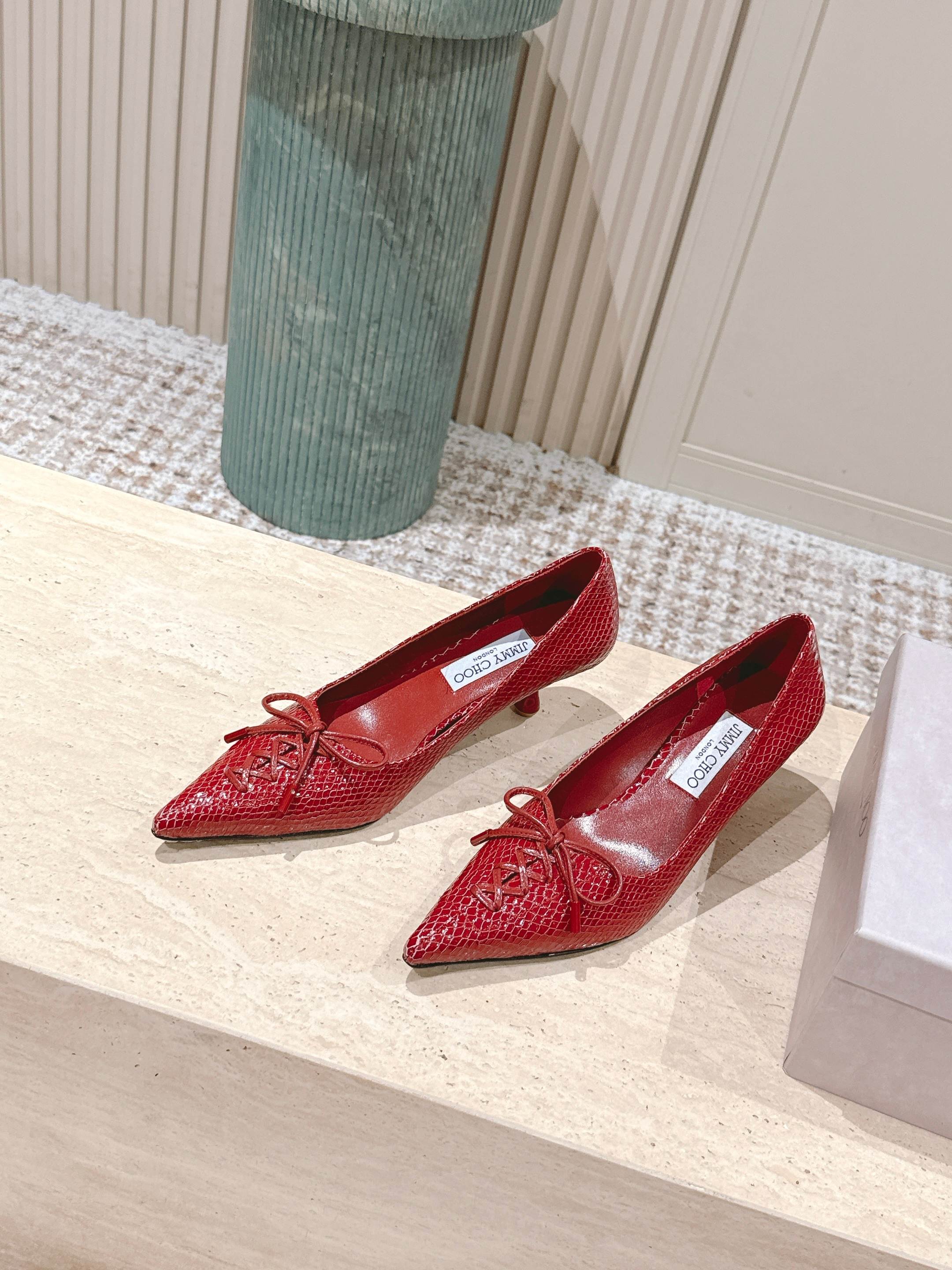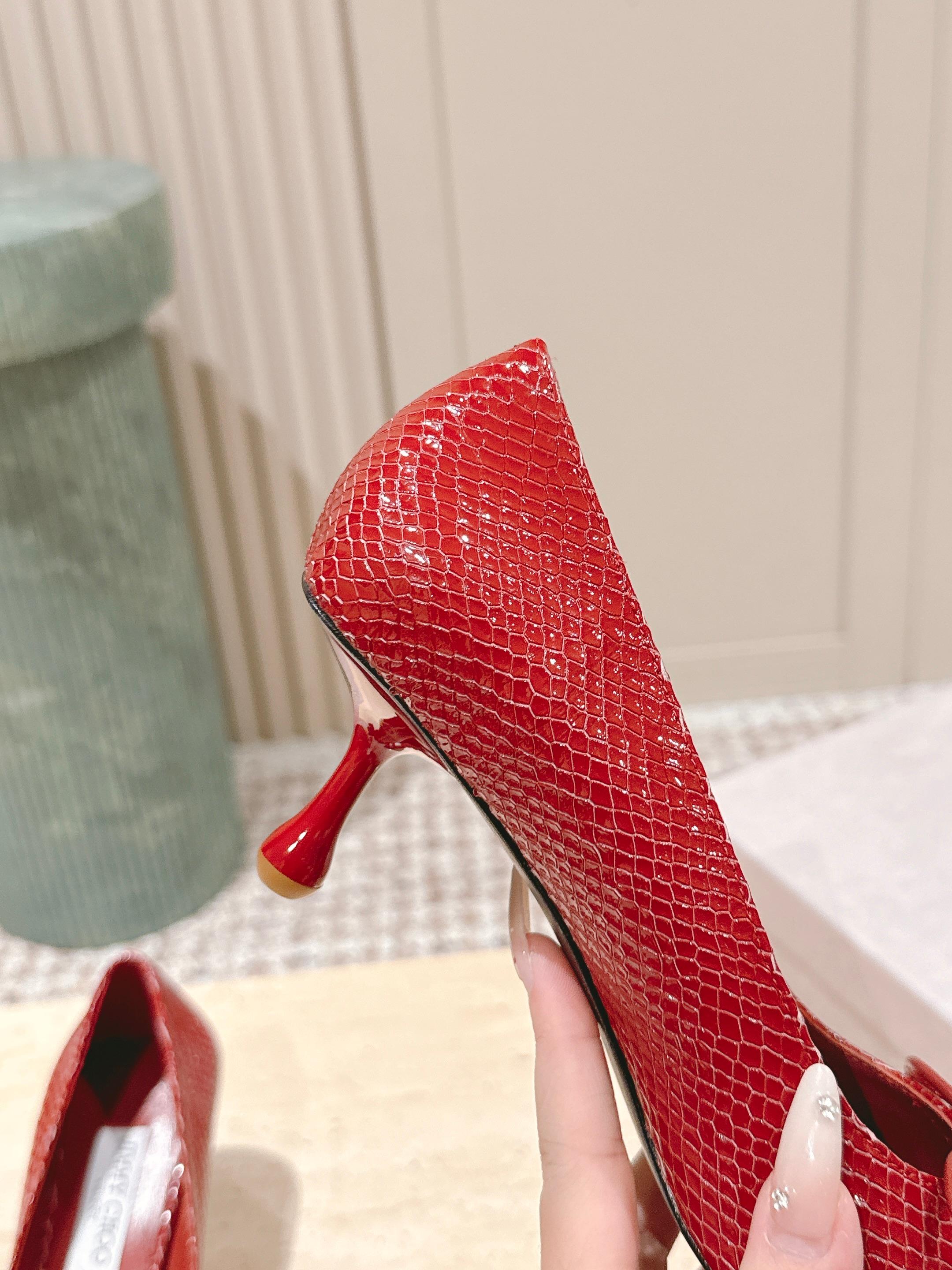 Jimmy Scarlett Snake Embossed Pumps 50mm Red Cowhide 431853