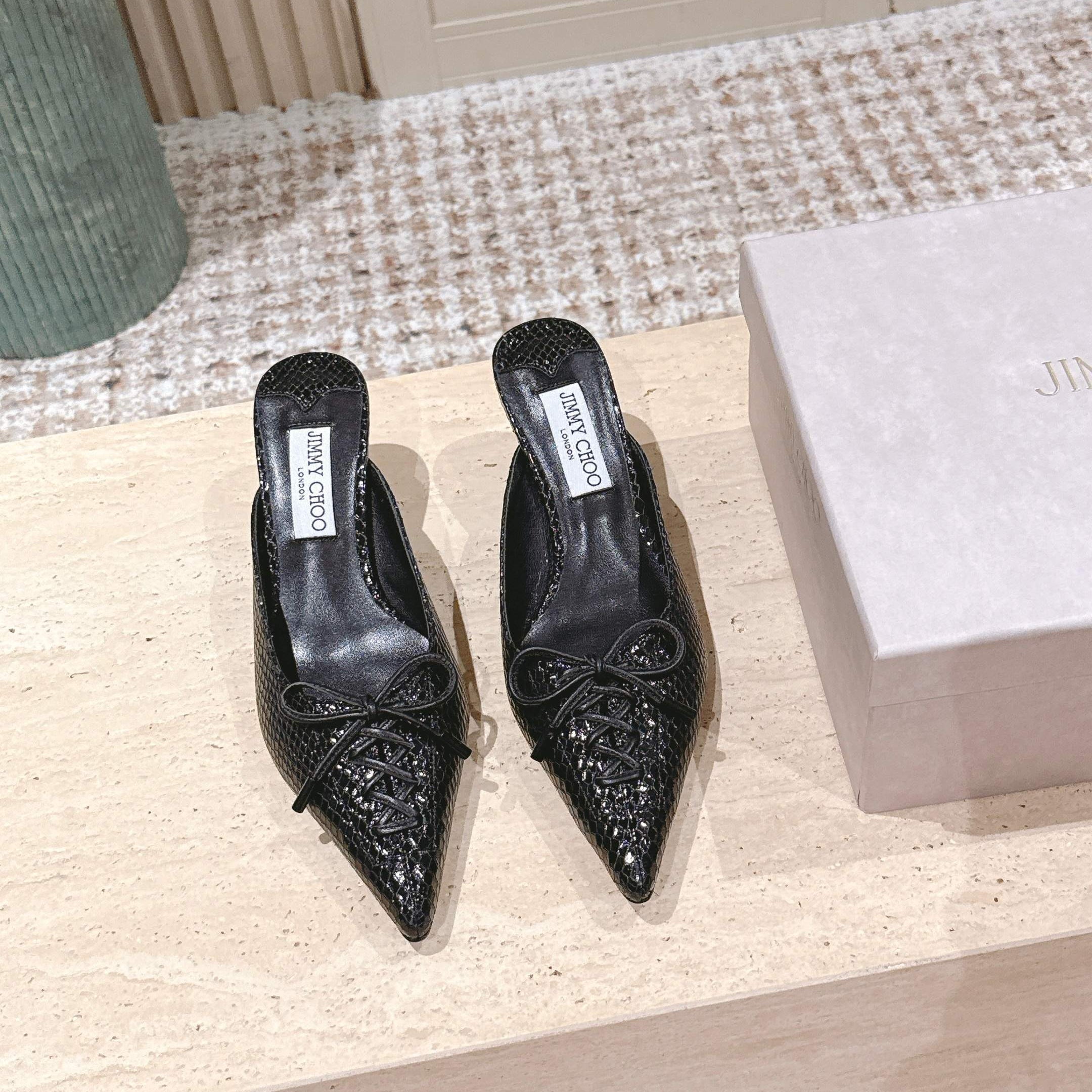Jimmy Snake Embossed Scarlett Mule 50mm Black Cowhide 431846