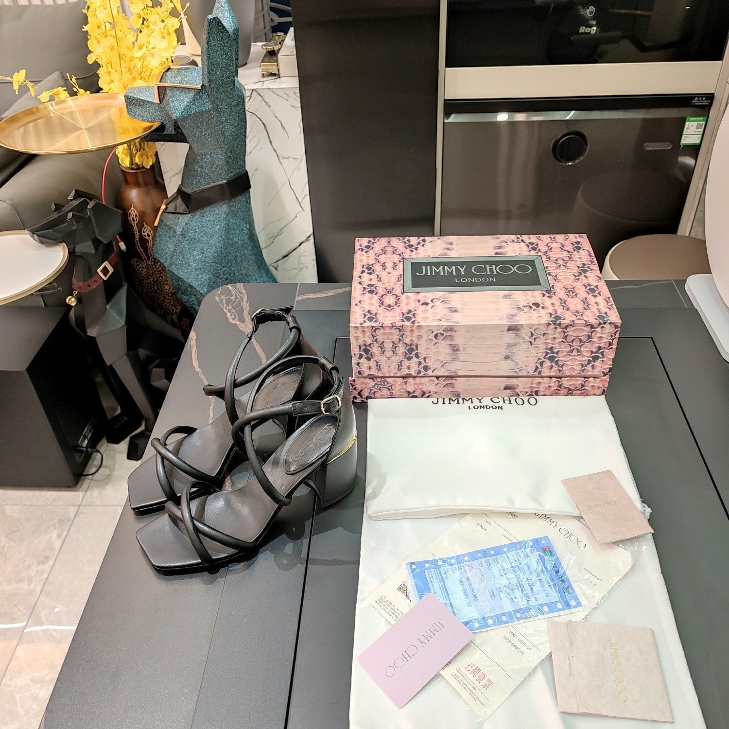 Jimmy 25 Platform Sandal Heels Black Nappa Cowhide 240009