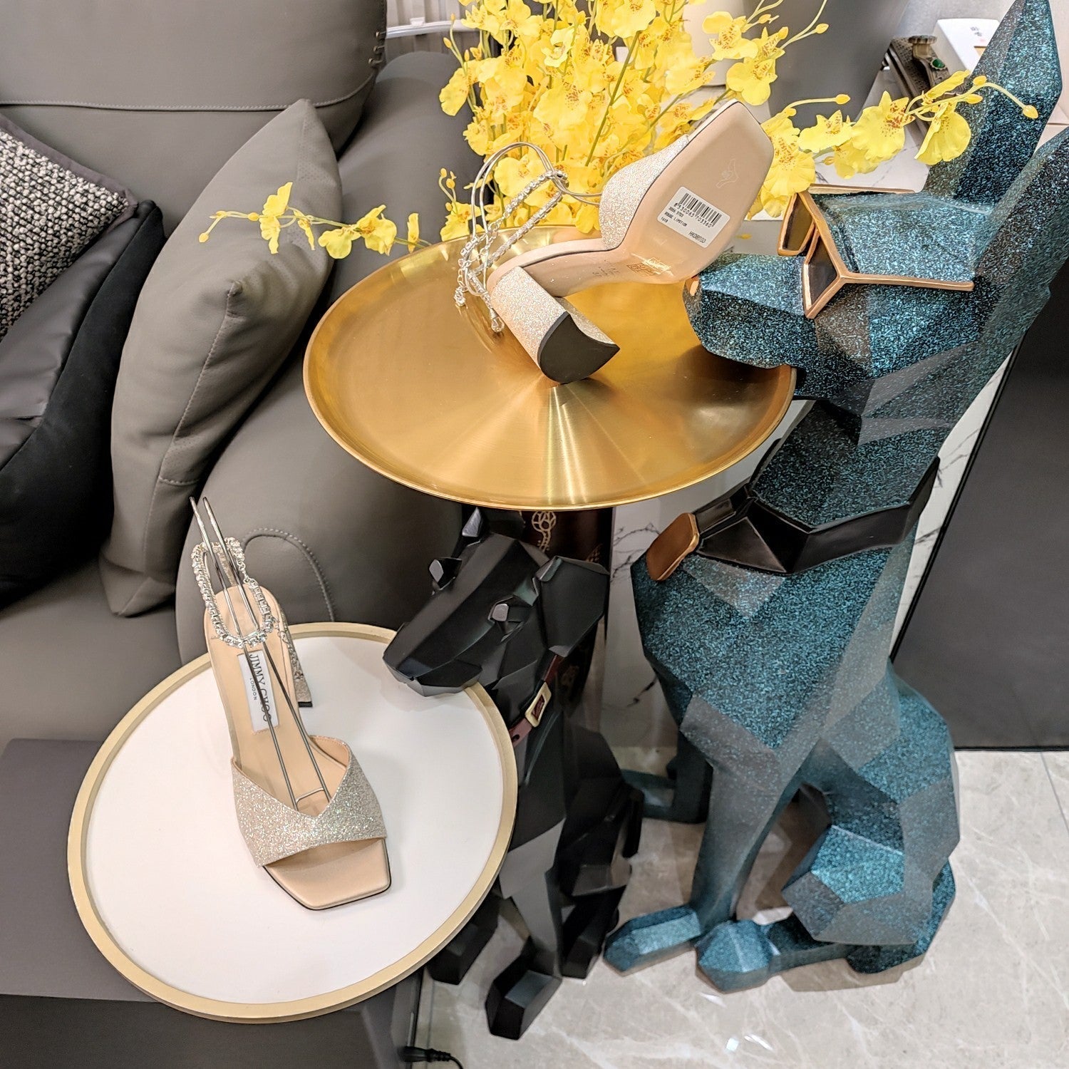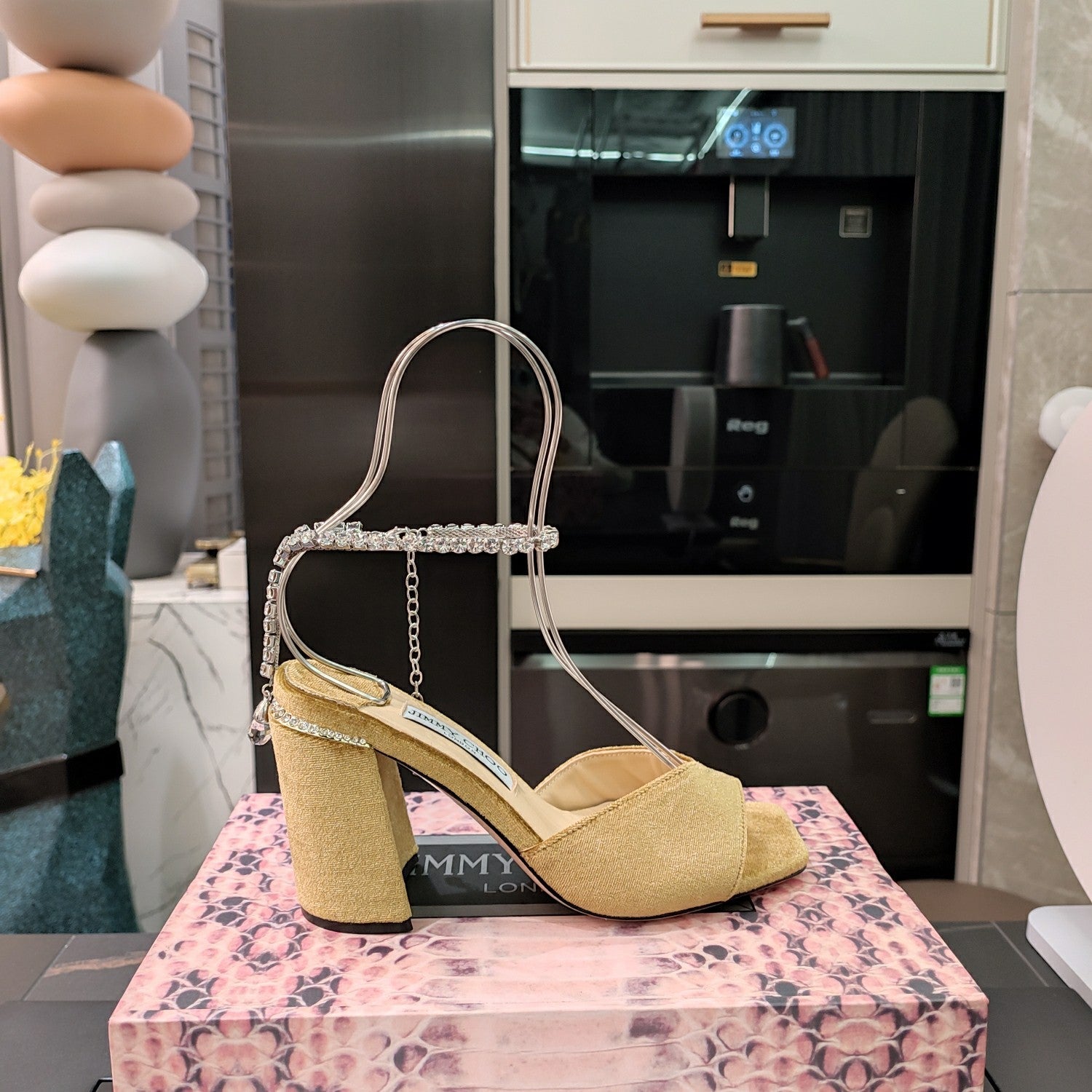 Jimmy 25 Platform Sandal Heels Gold Mirror TPU Material 240010