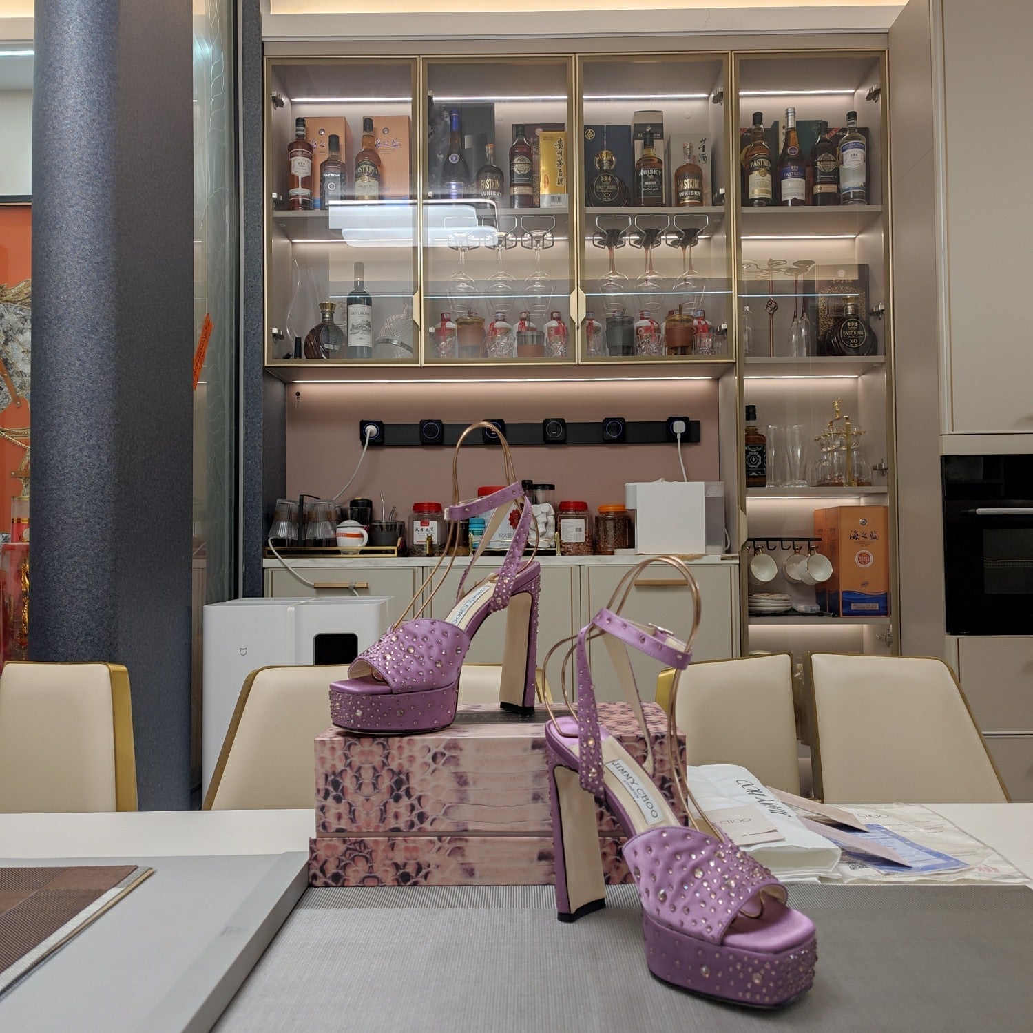 Jimmy 25 Platform Sandal Heels Lady Pink Silk Satin 240012