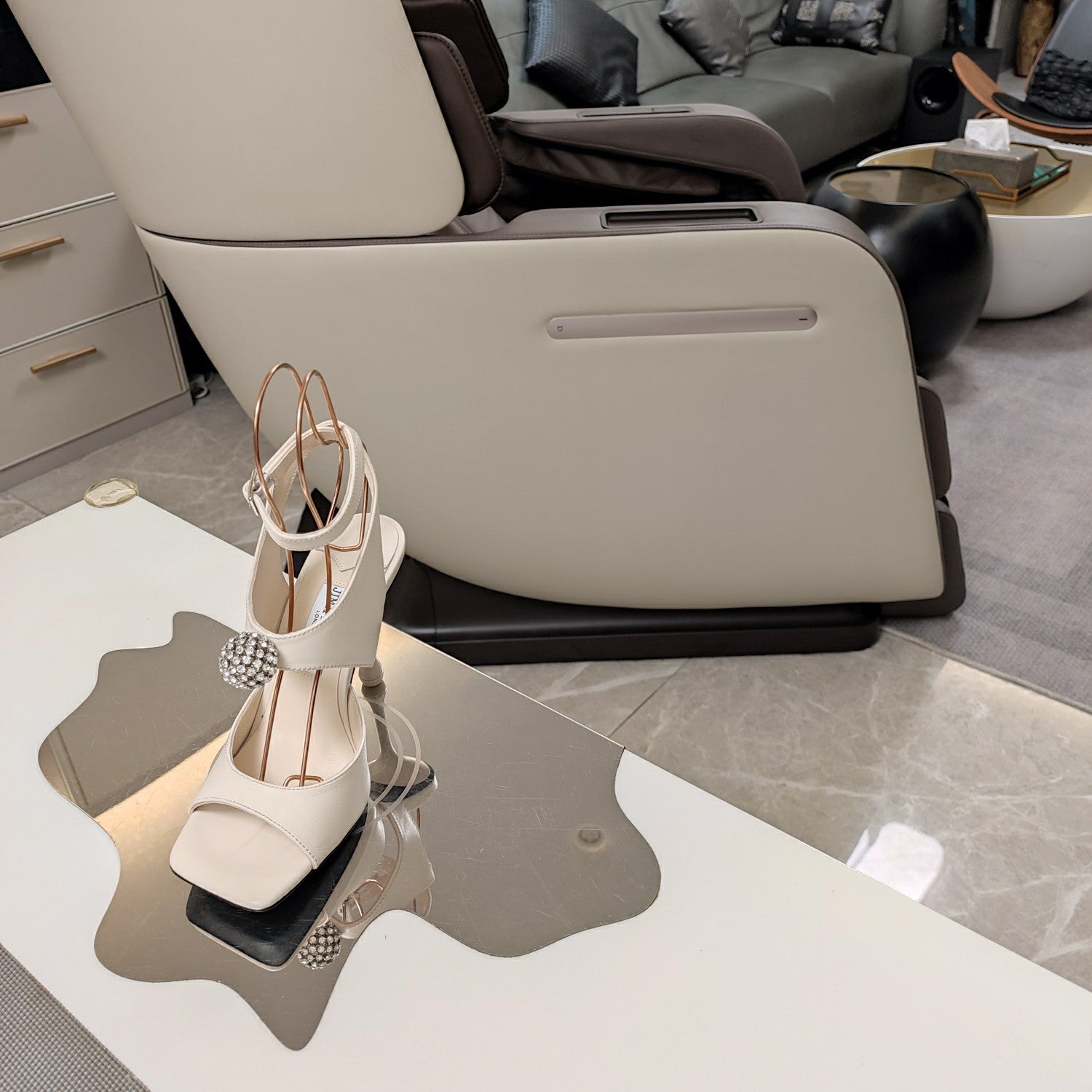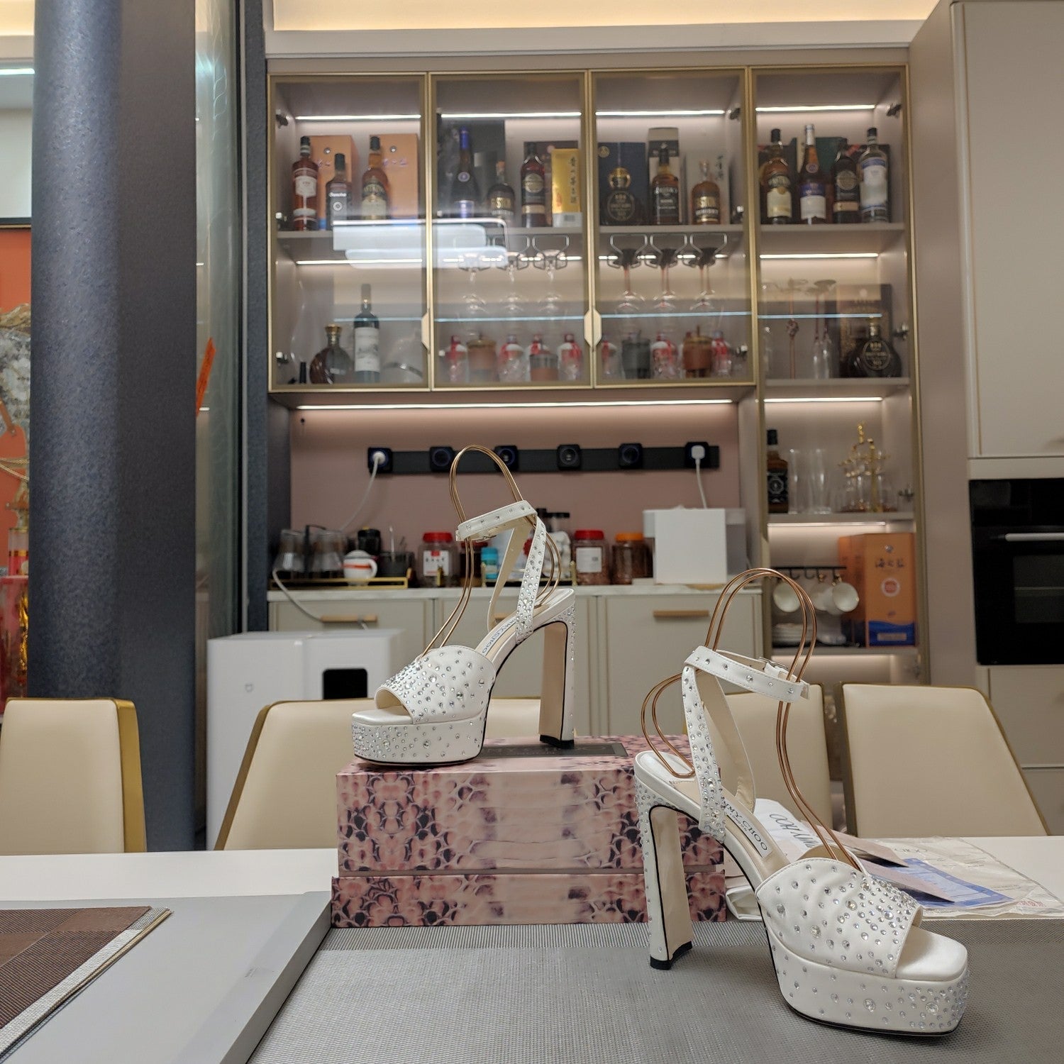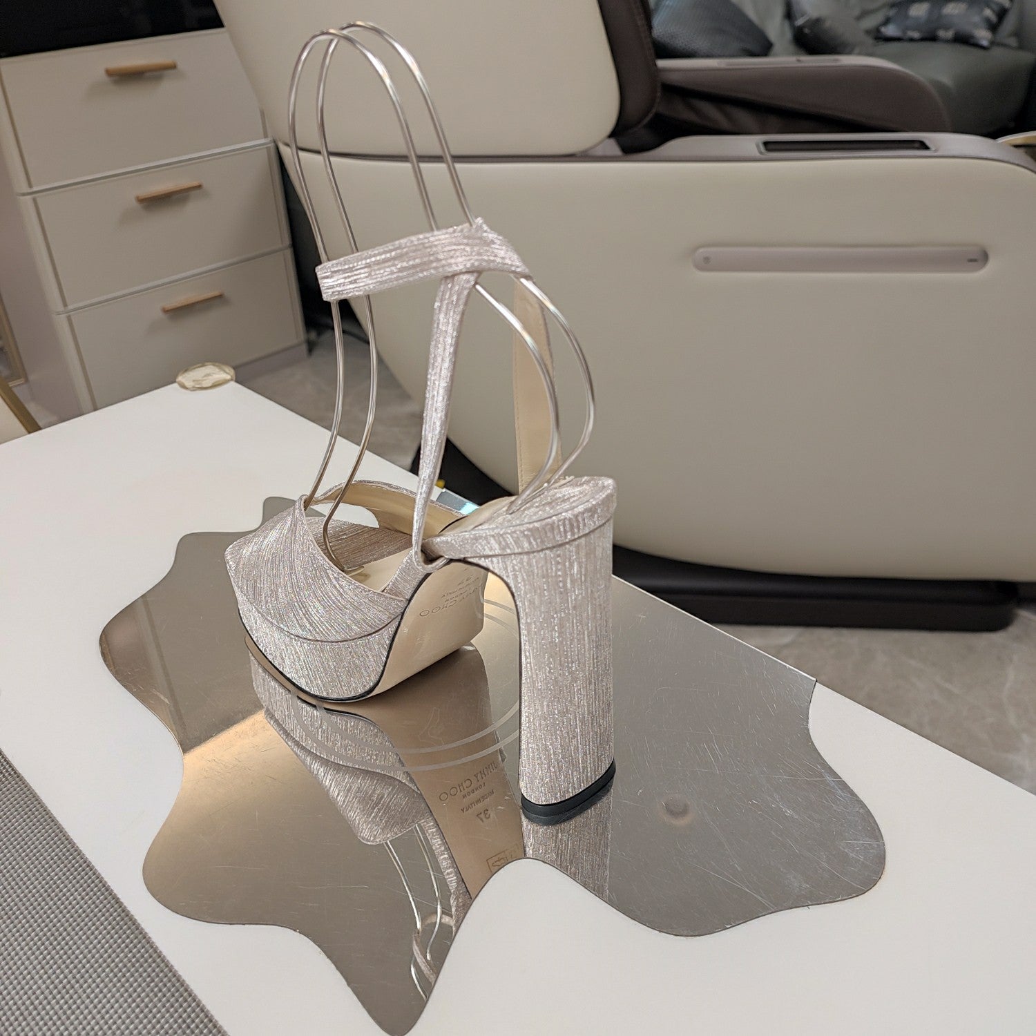 Jimmy 25 Platform Sandal Heels Silver Mirror TPU Material 240008