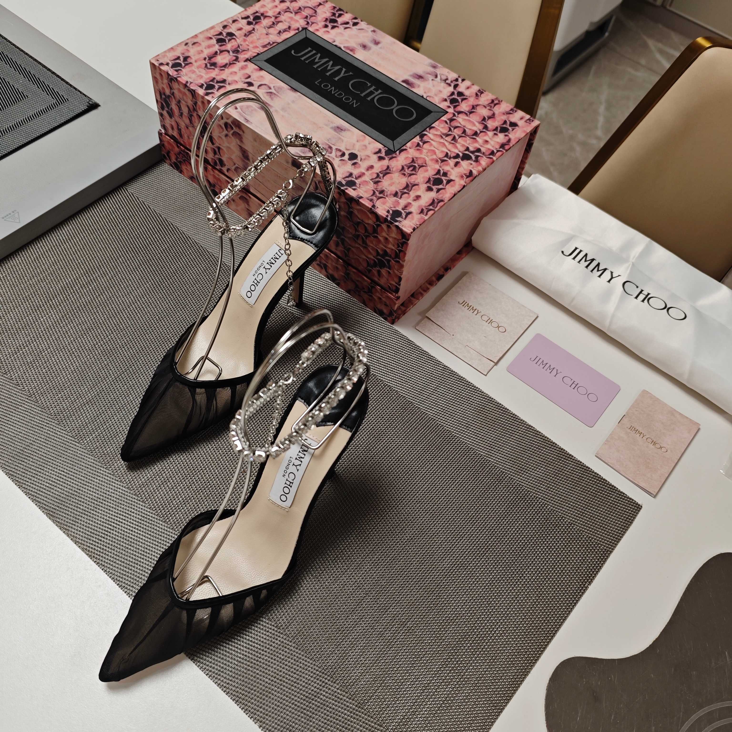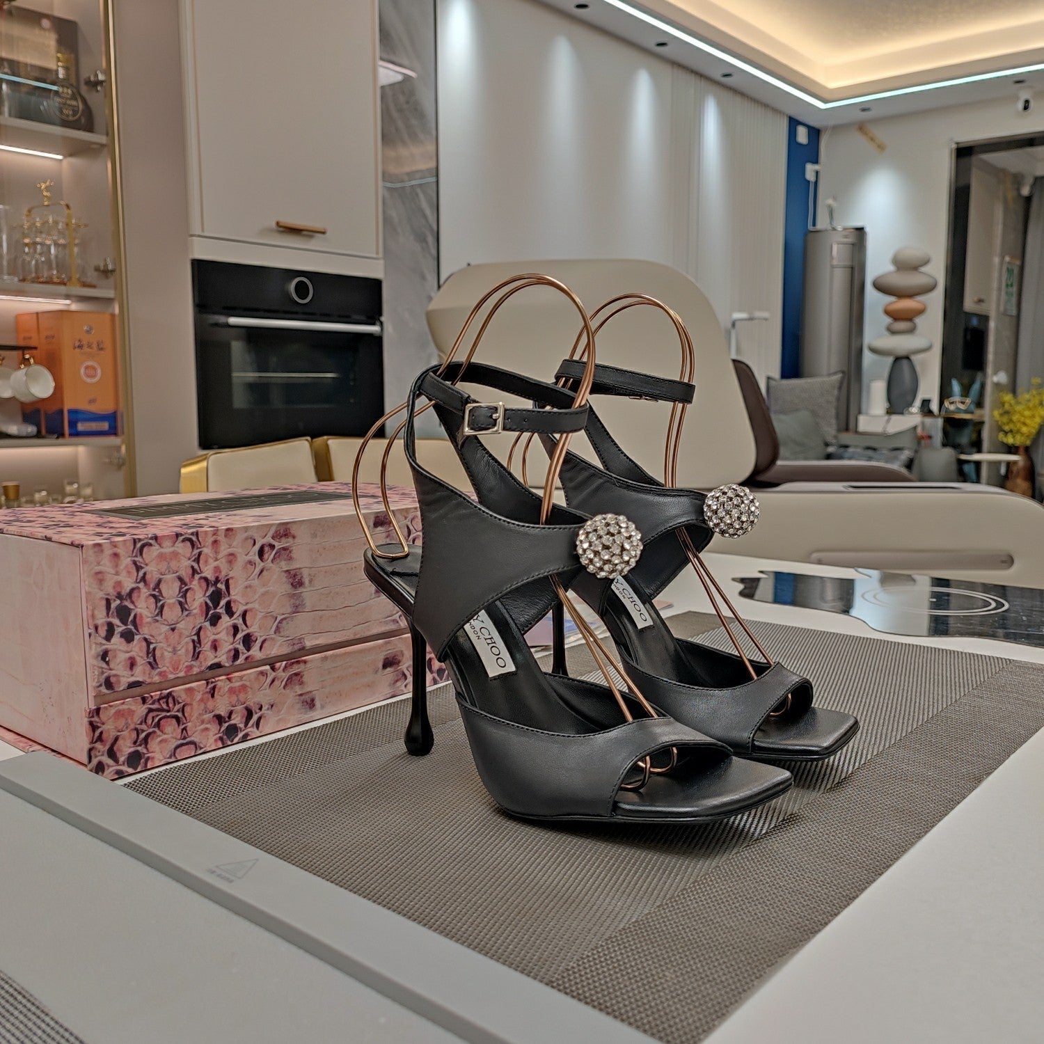 Jimmy 25 Sandal Heels Black Cowhide 240086