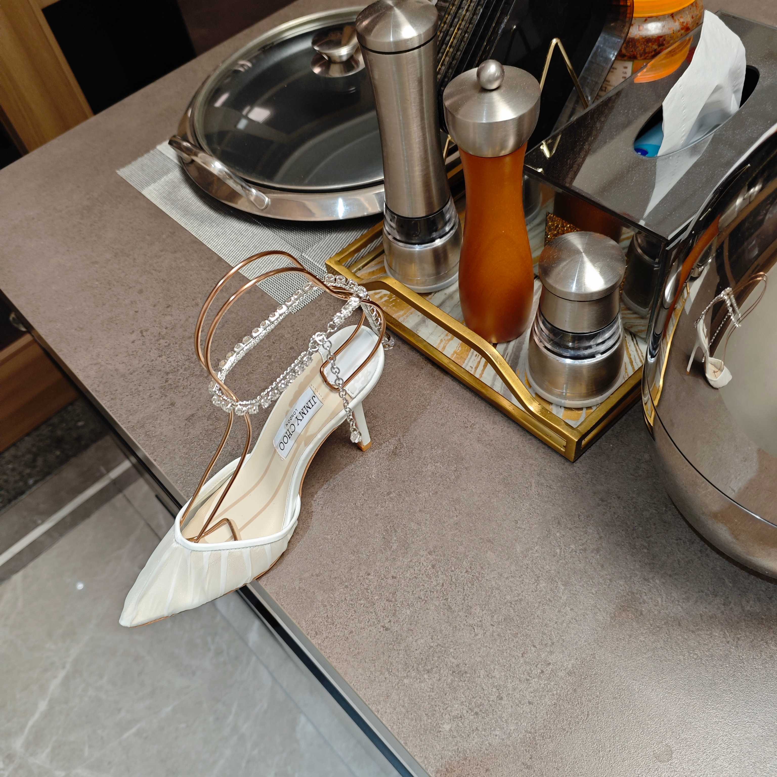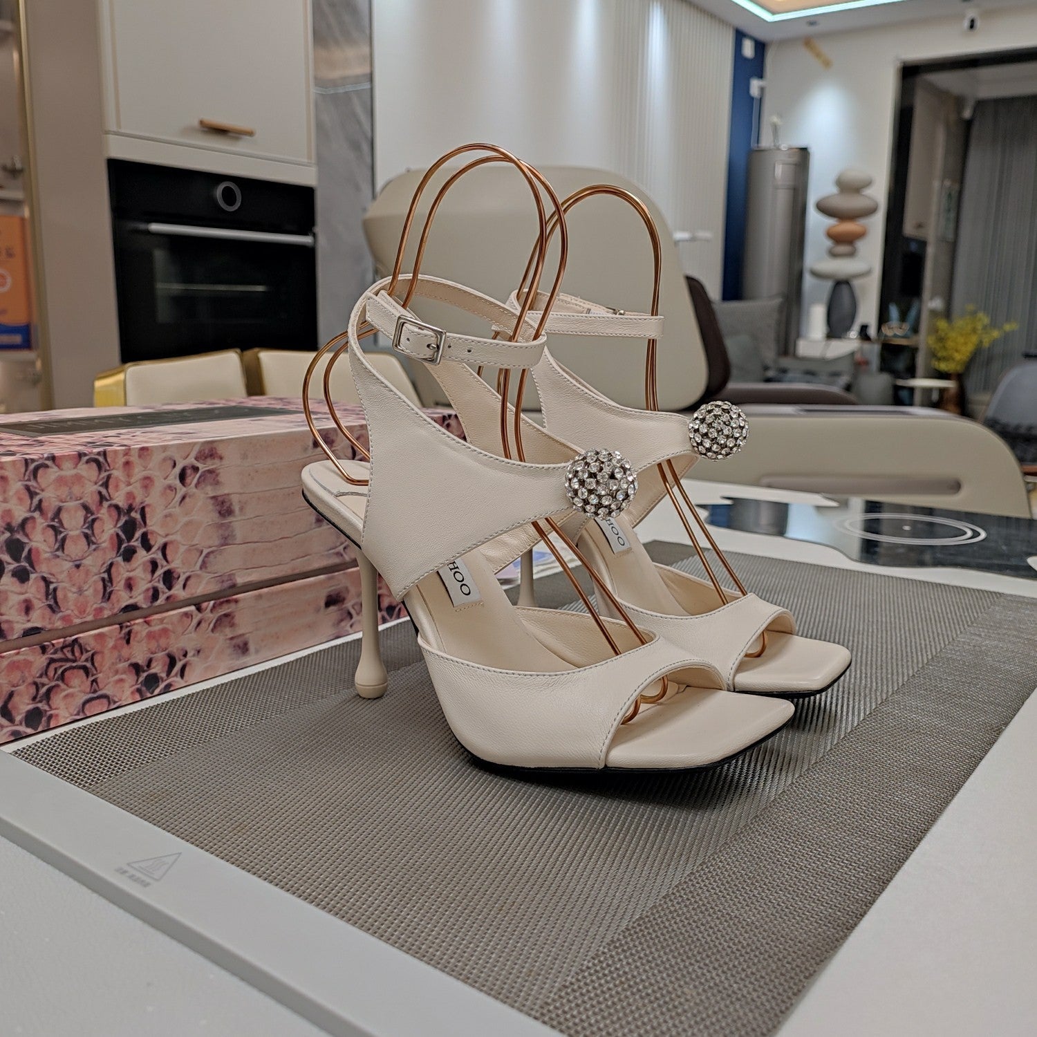 Jimmy 25 Sandal Heels White Cowhide 240087