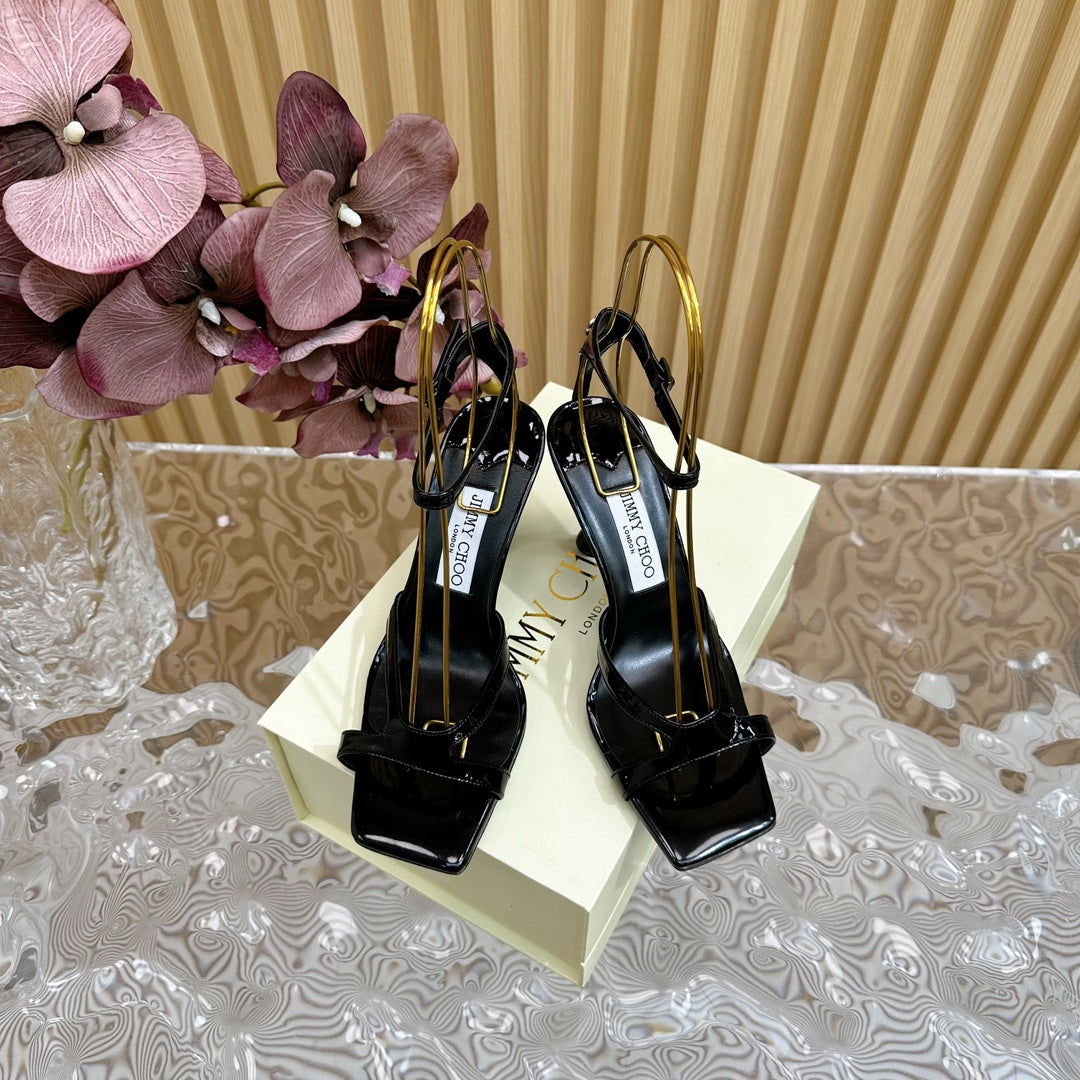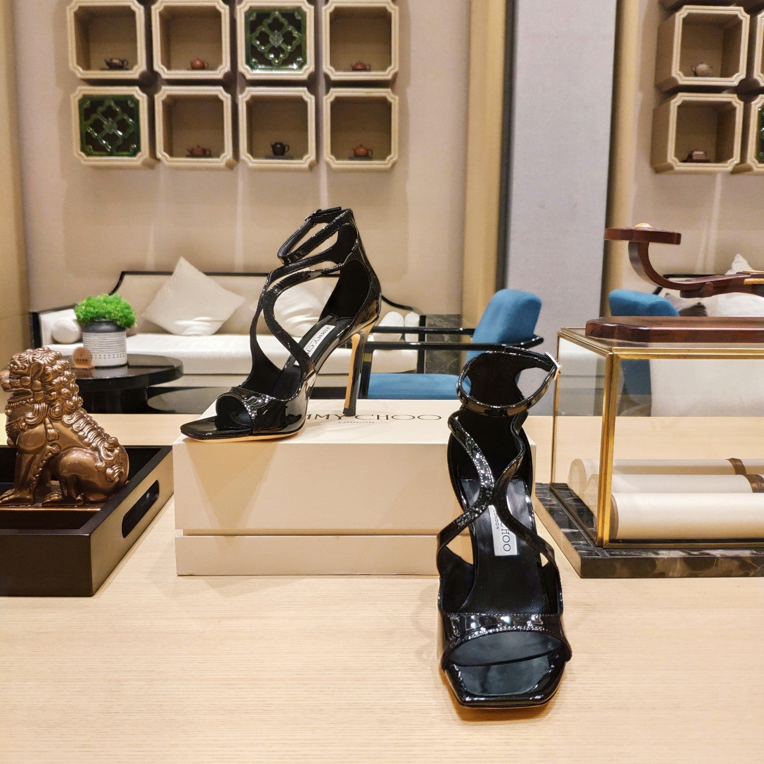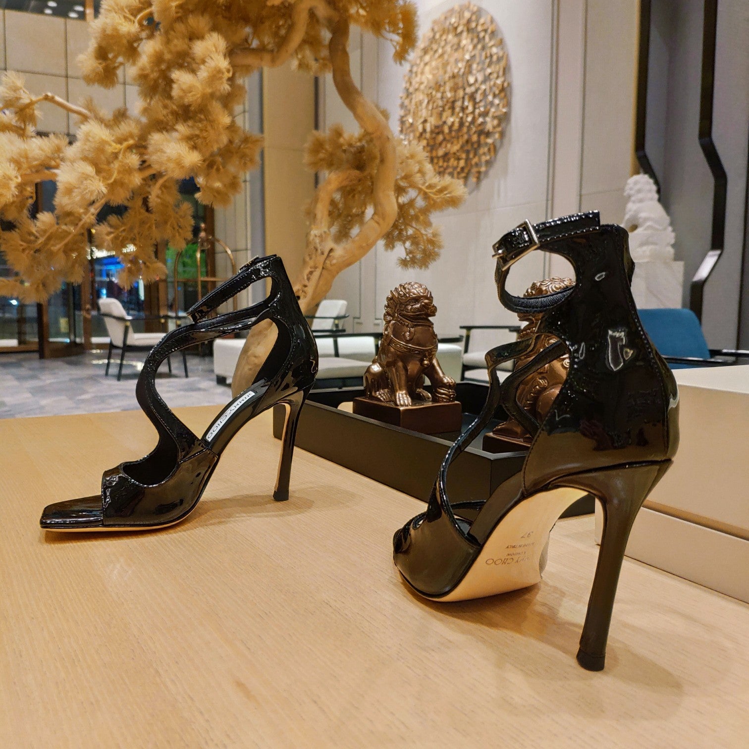Jimmy Azia 95 In Black Glossy Cowhide Sandals 587707