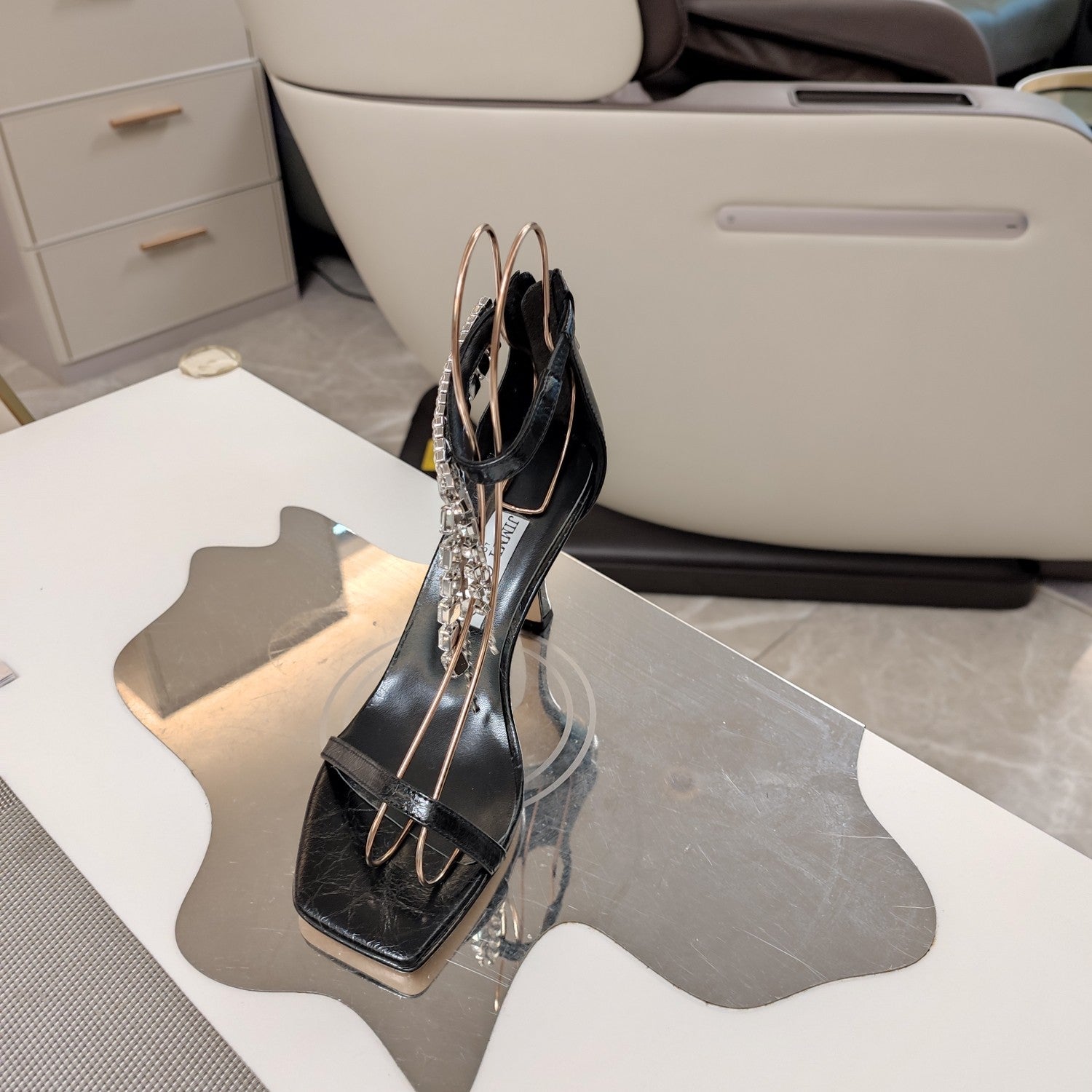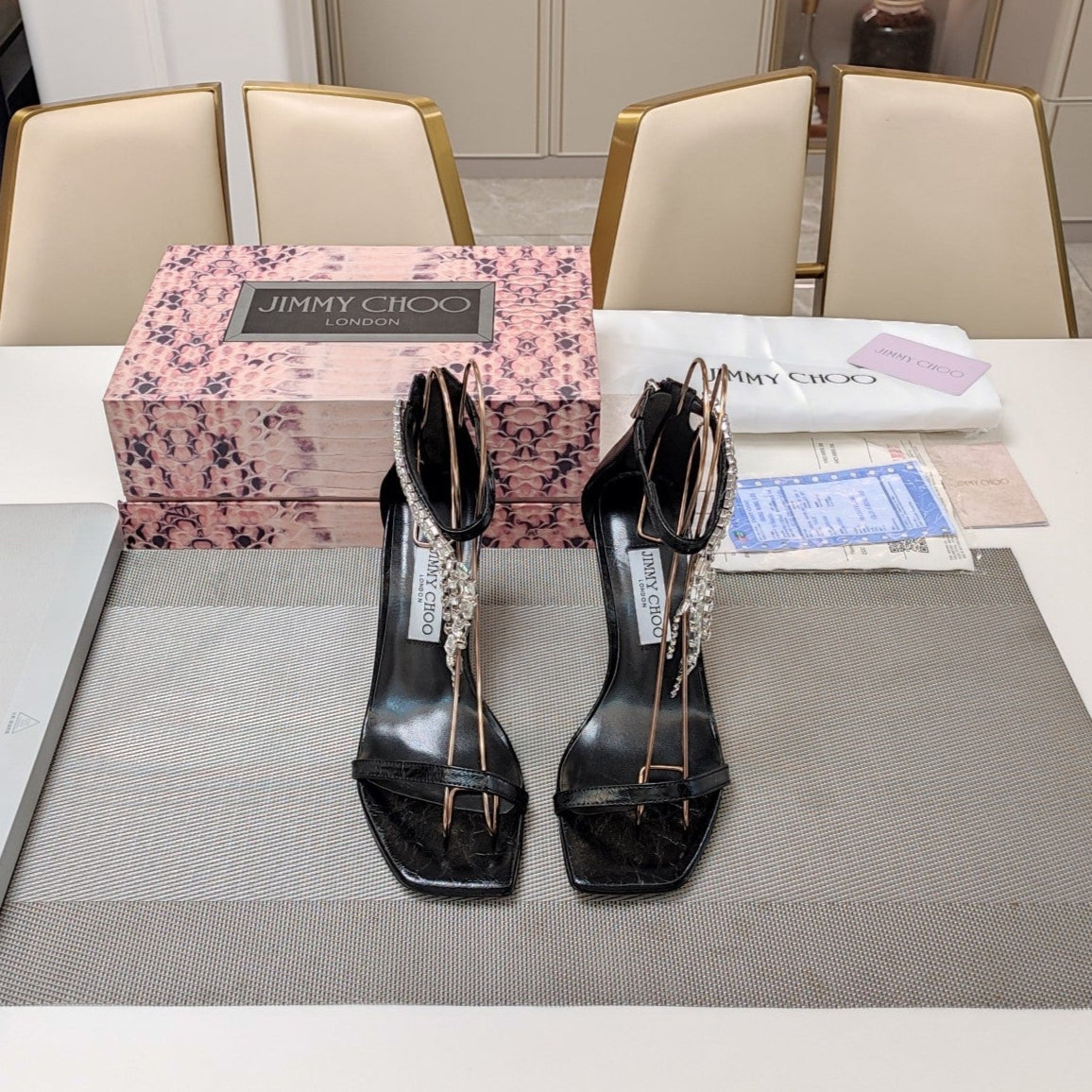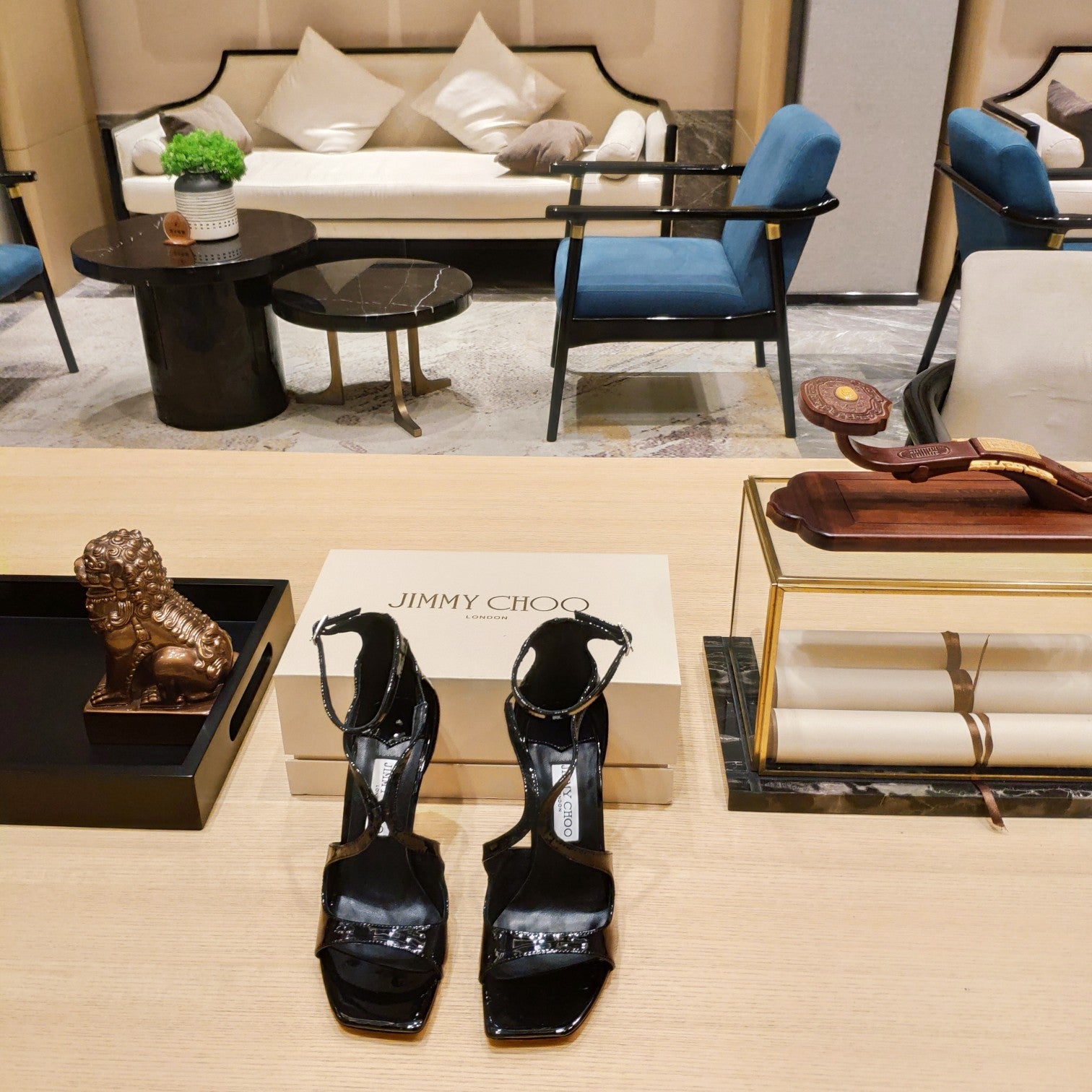 Jimmy Azia 95 In Black Glossy Cowhide Sandals 587707