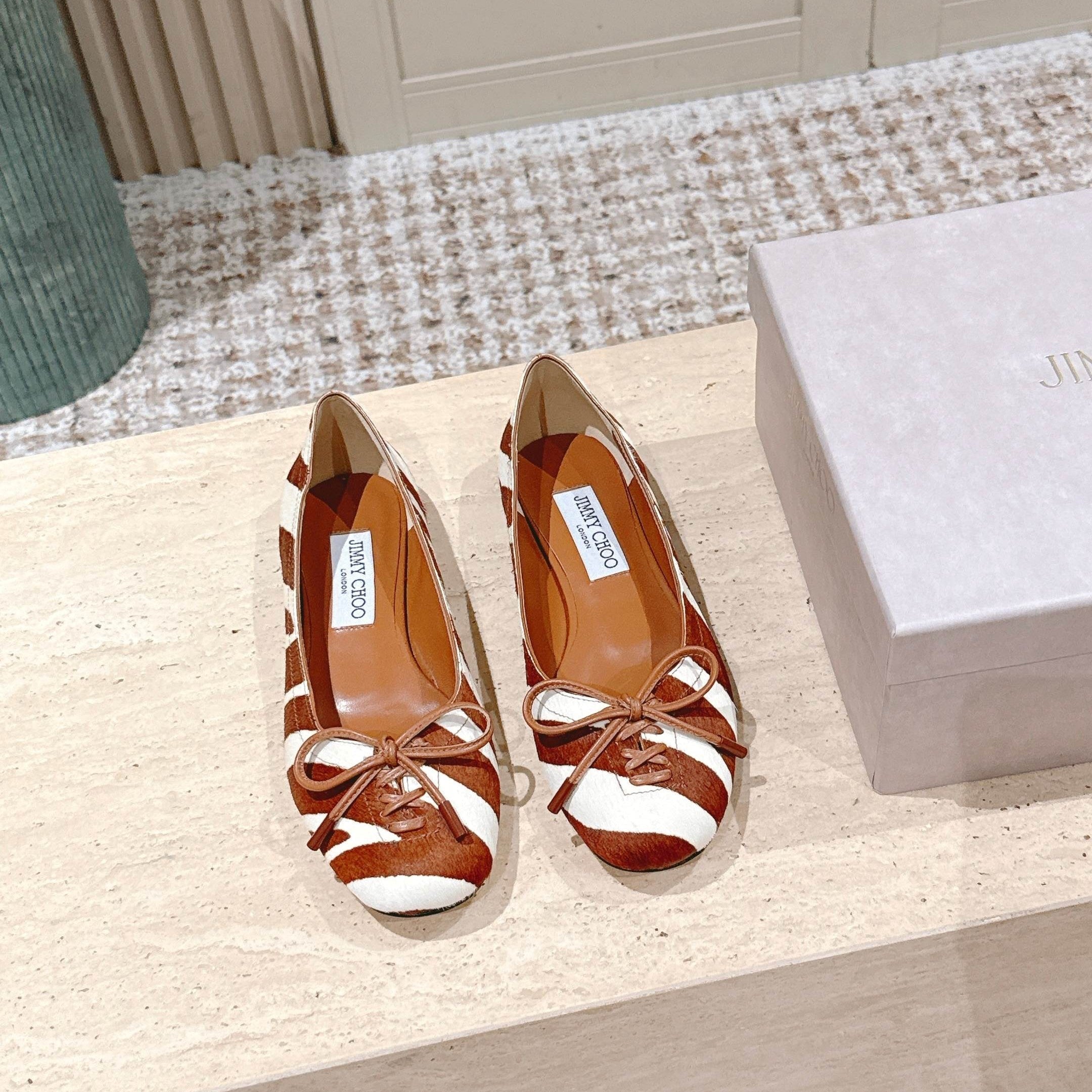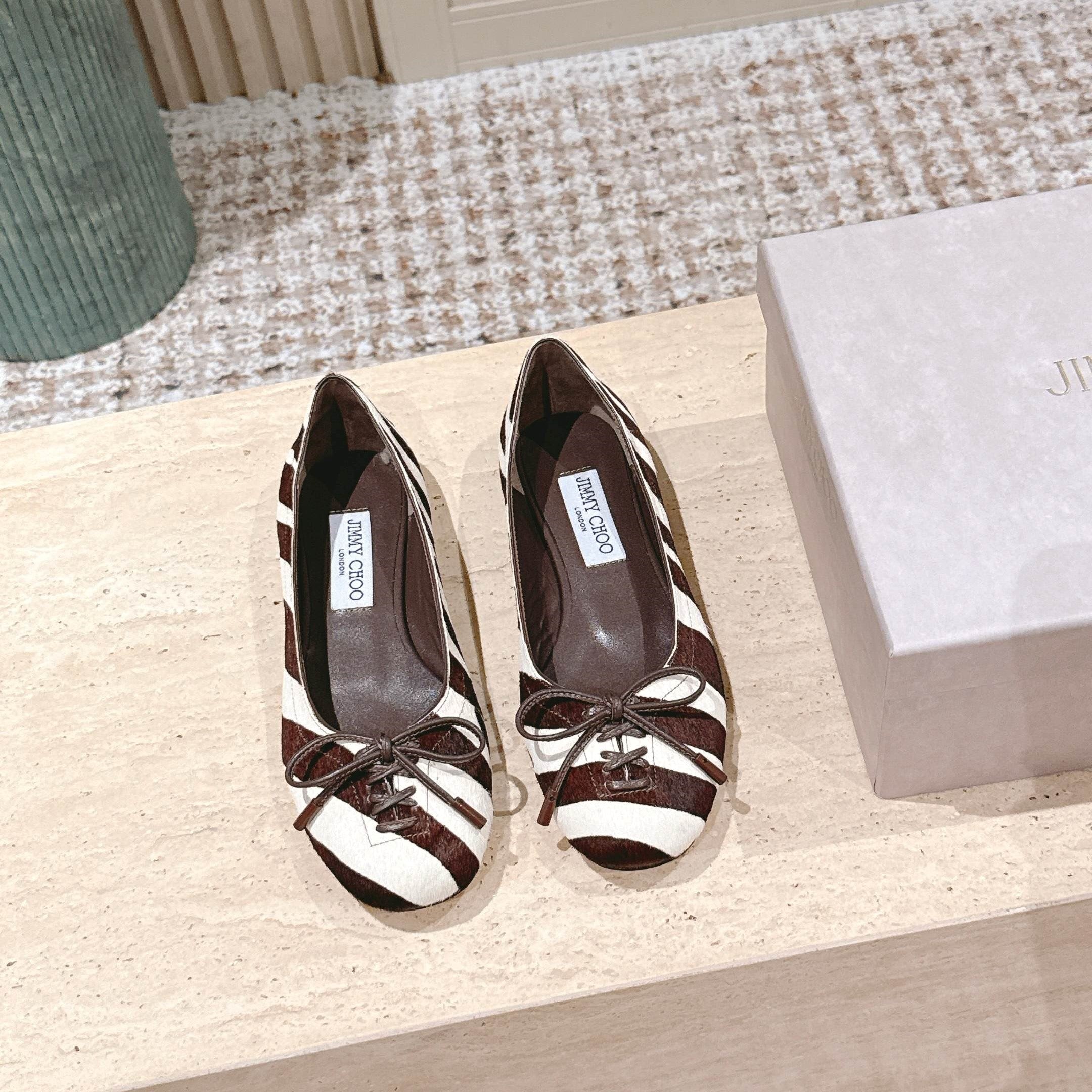 Jimmy 25s Ballet Flats 10mm Brown White Zebra Hair & Sheepskin 431868