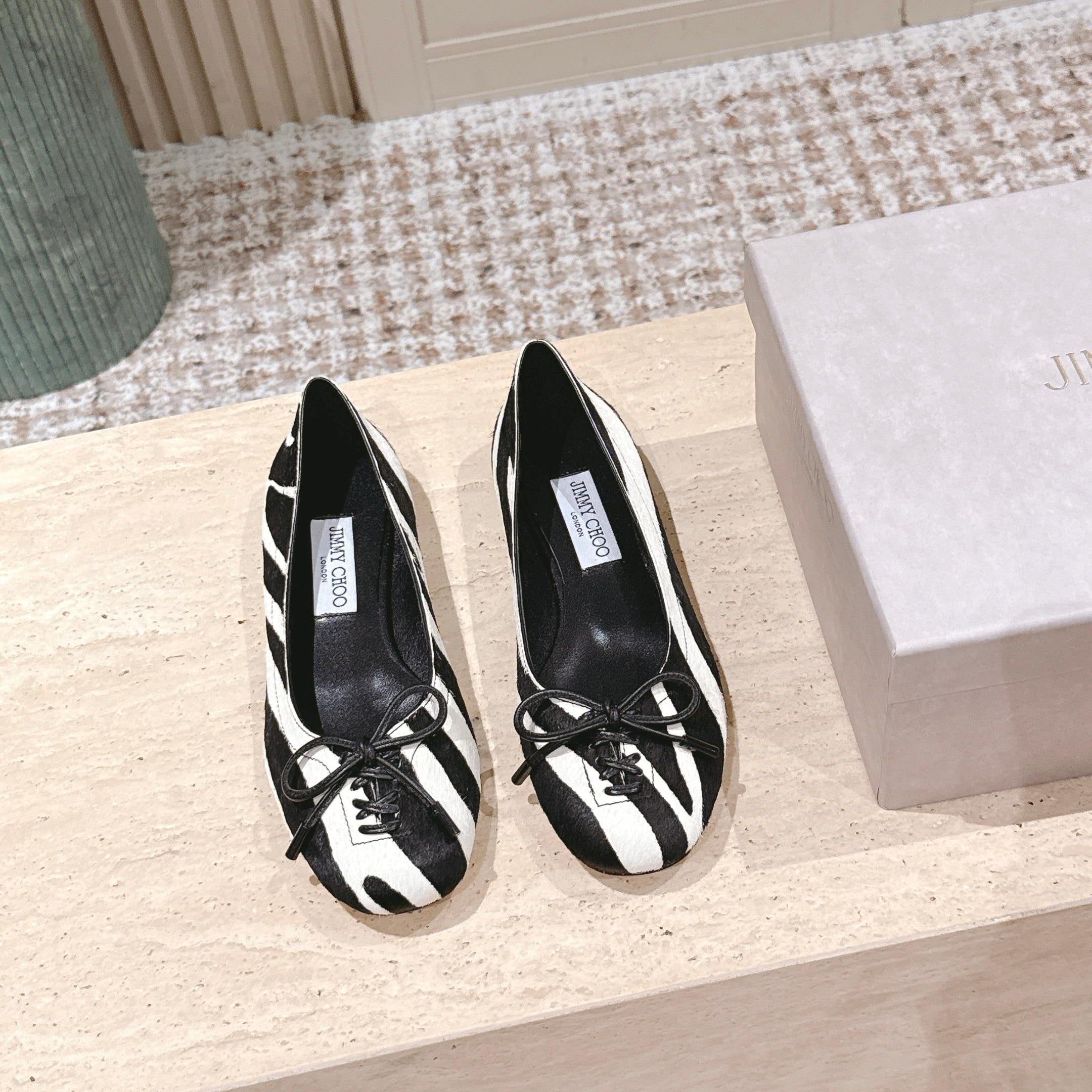 Jimmy 25s Ballet Flats 10mm Black White Zebra Hair & Sheepskin 431866