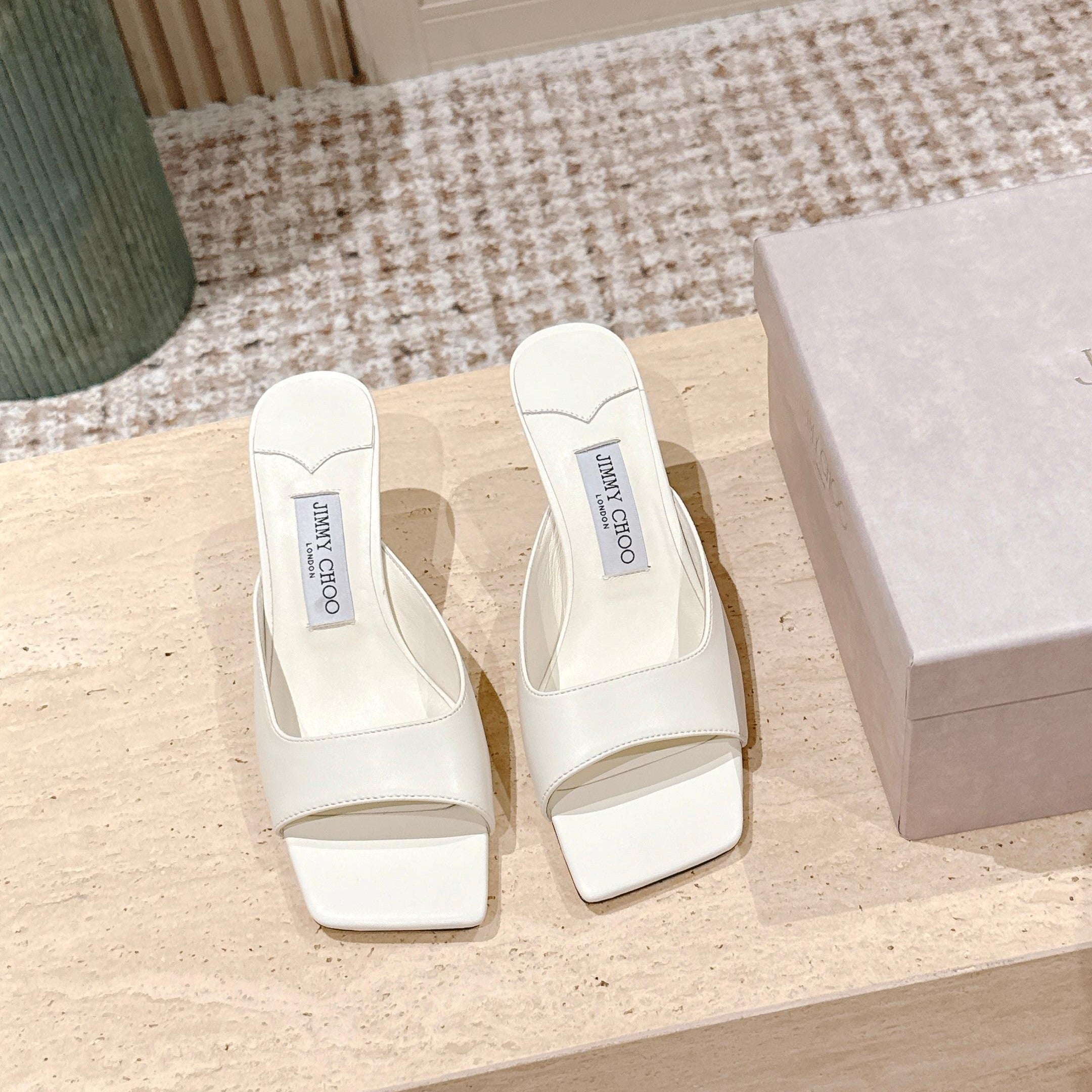 Jimmy 25s Skye Satin Mules 70mm White Leather 431871