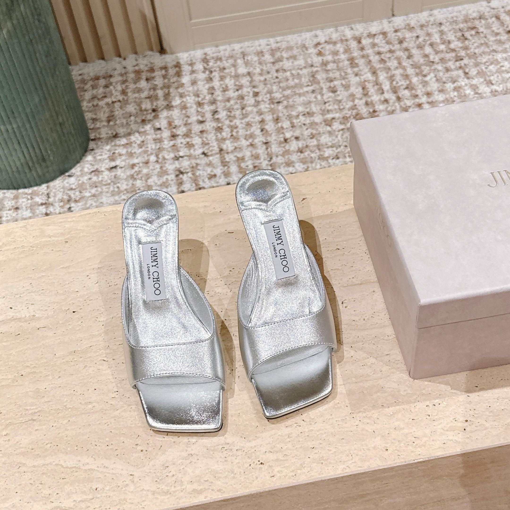 Jimmy 25s Skye Satin Mules 70mm Sliver Leather 431869