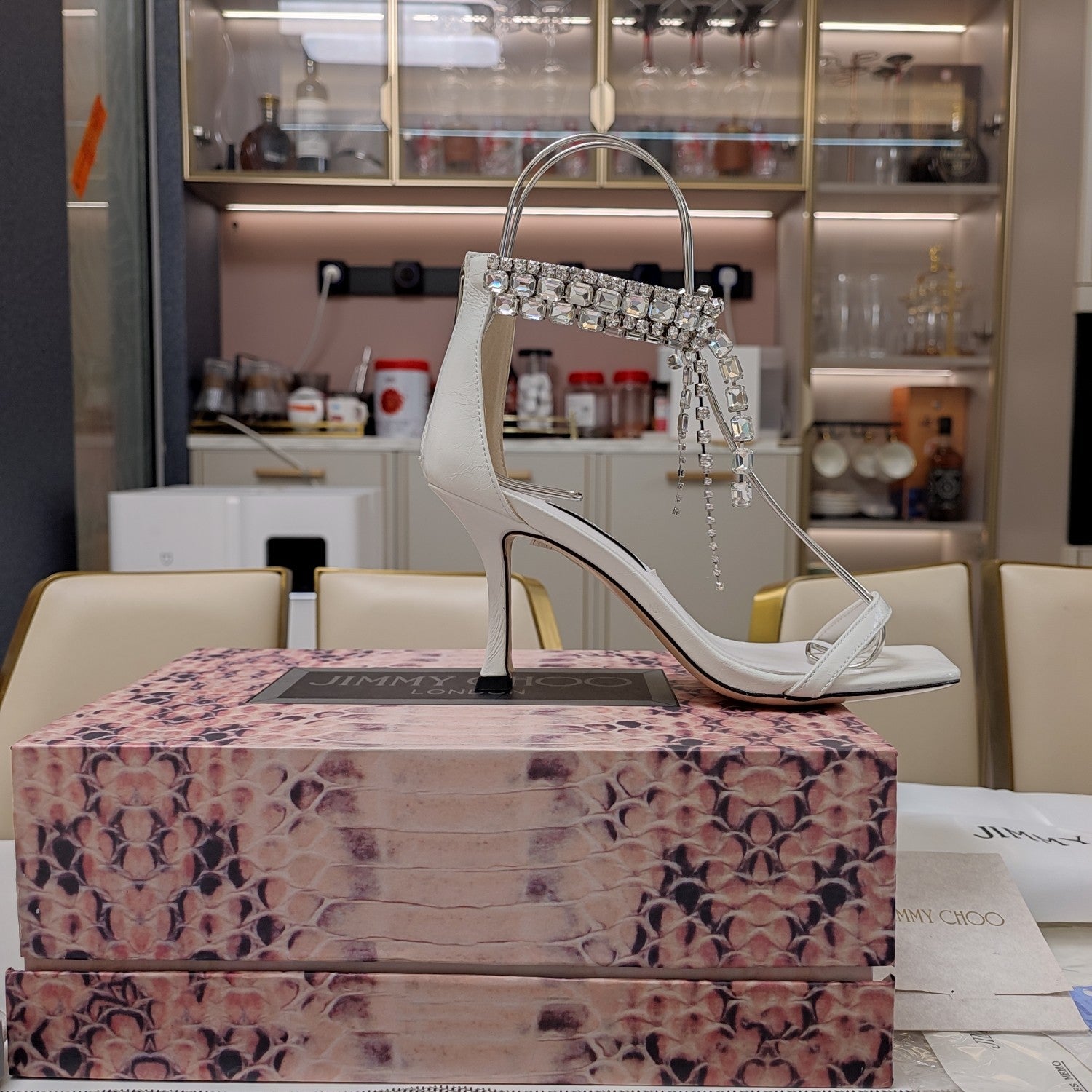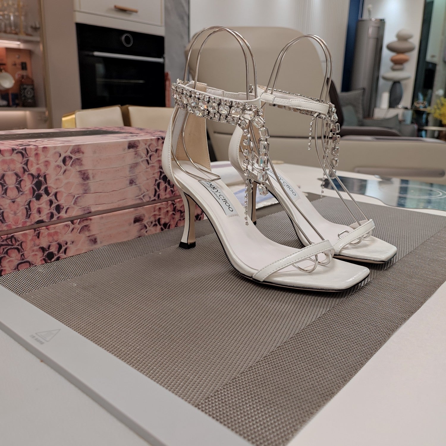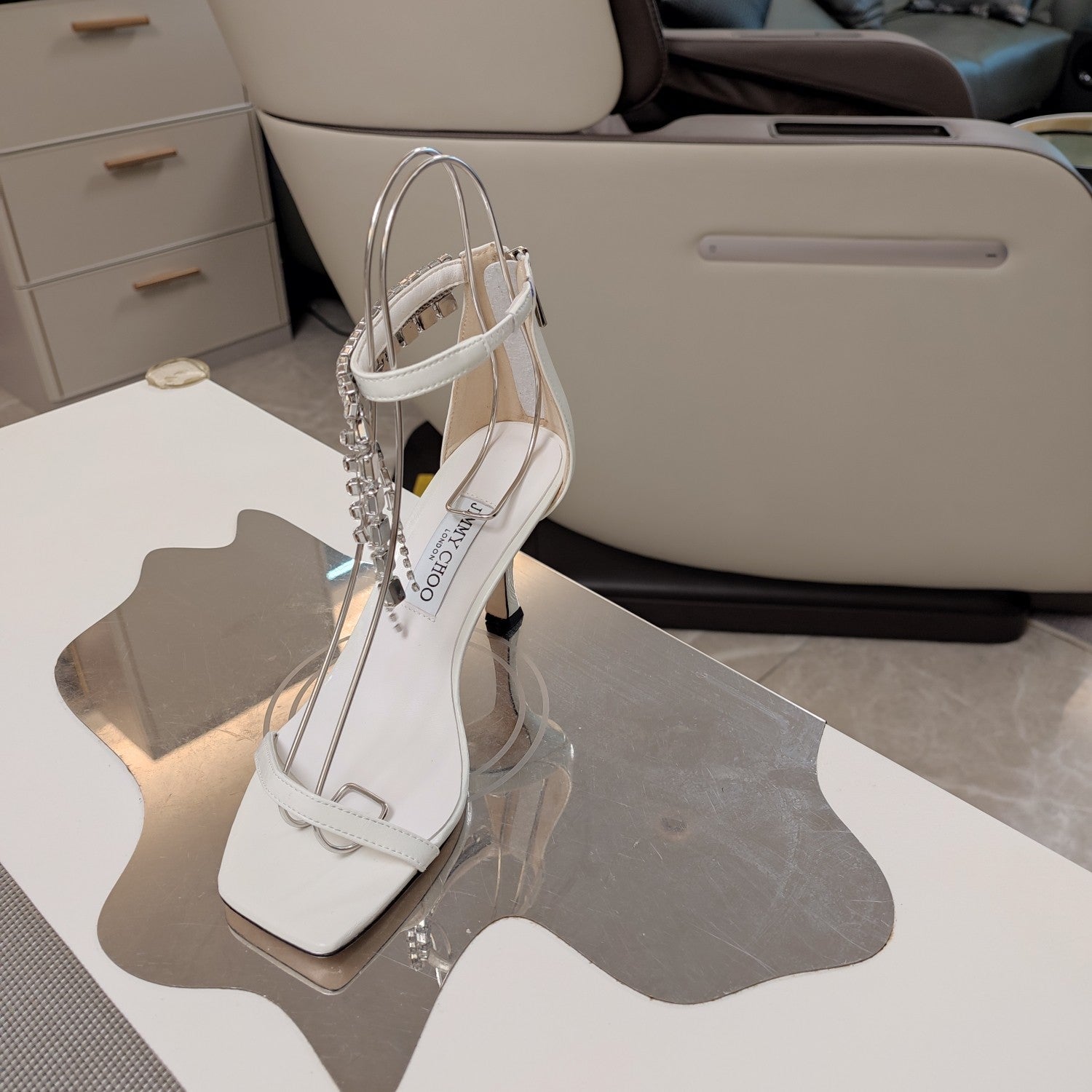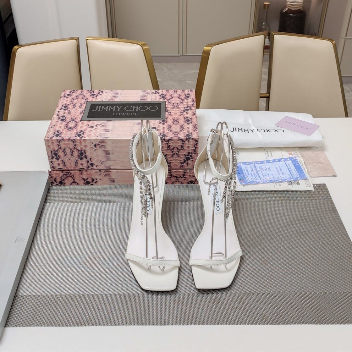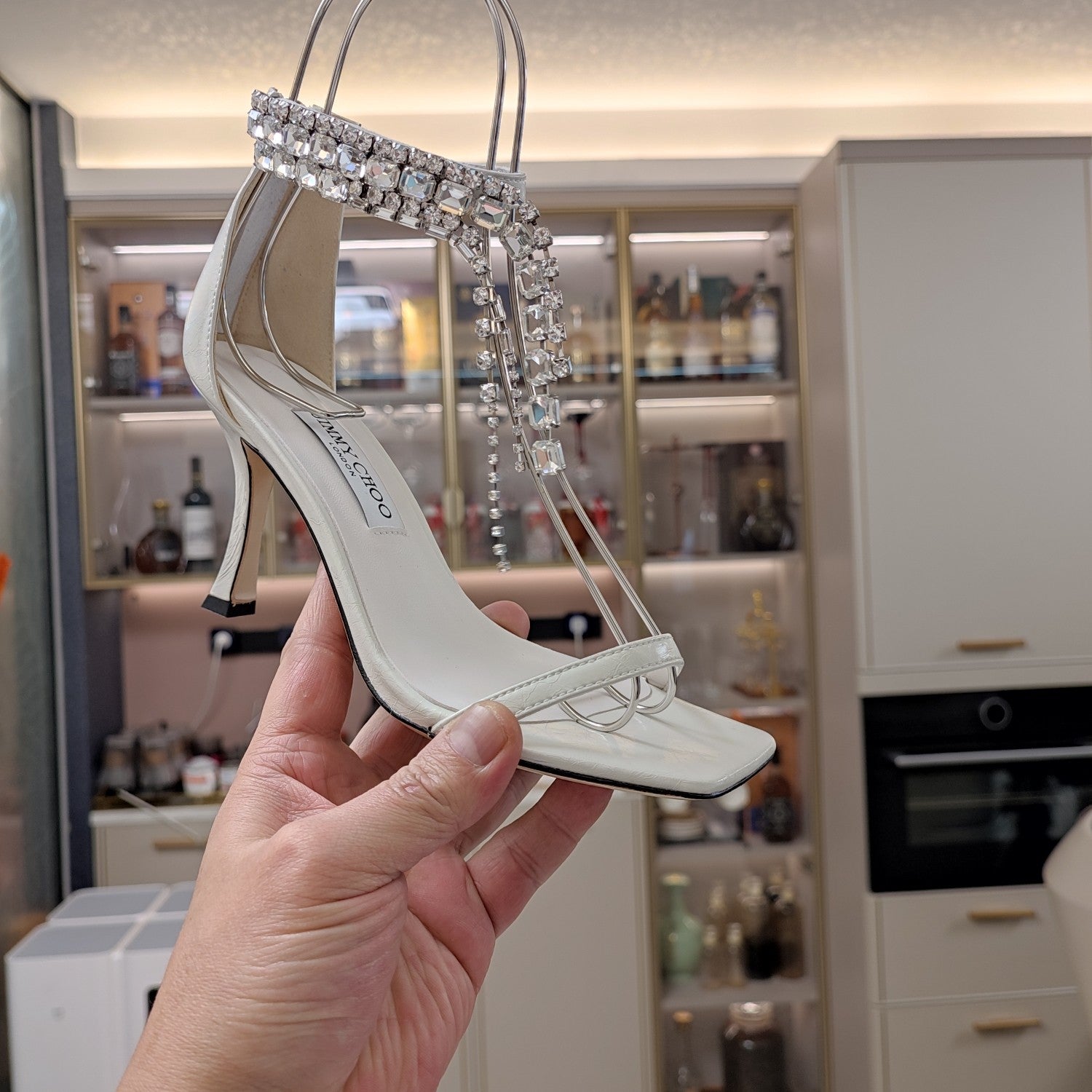 Jimmy Azia 95 In White Glossy Cowhide Sandals 587705