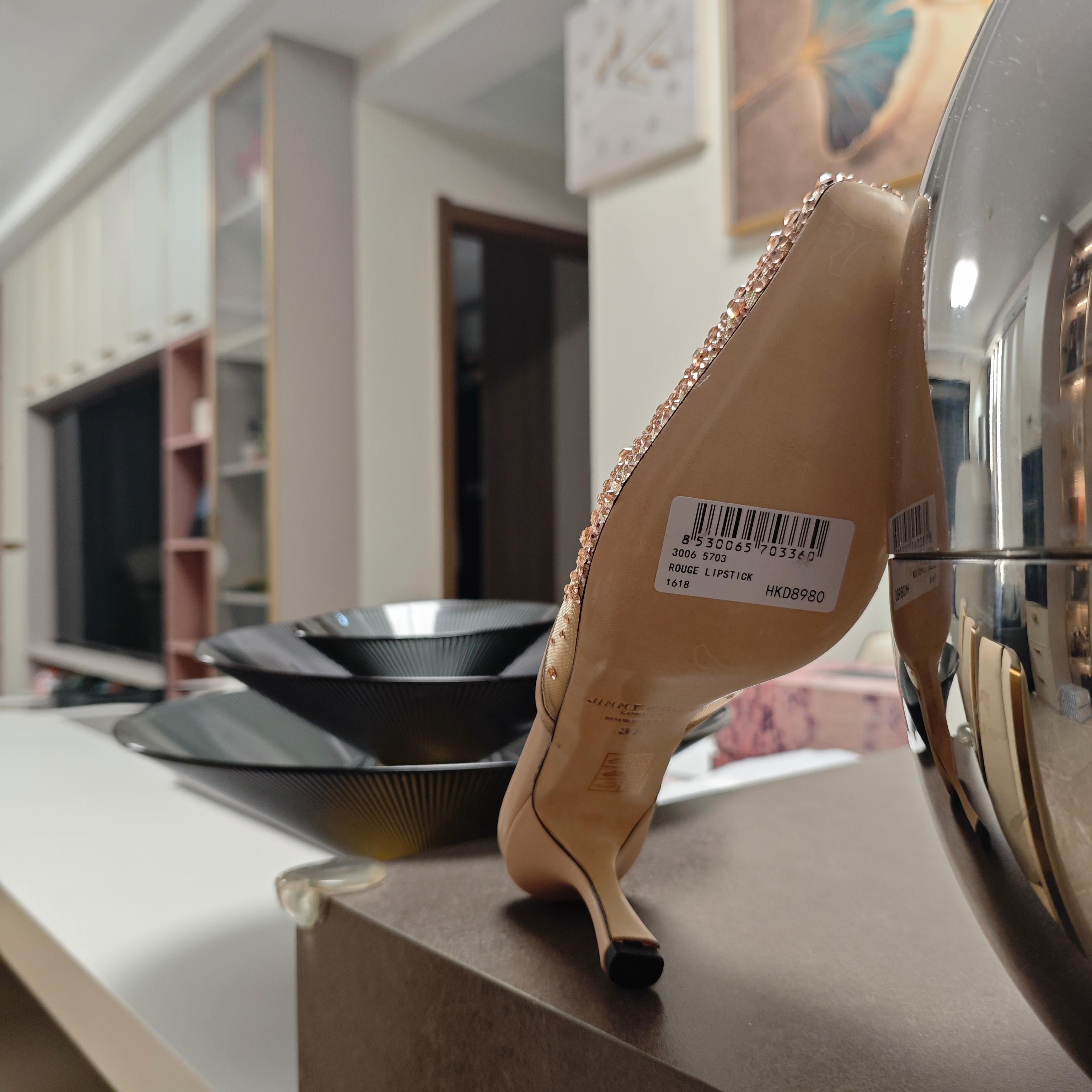 Jimmy Azia 95 In Light Beige Pink Glossy Cowhide Sandals 587703