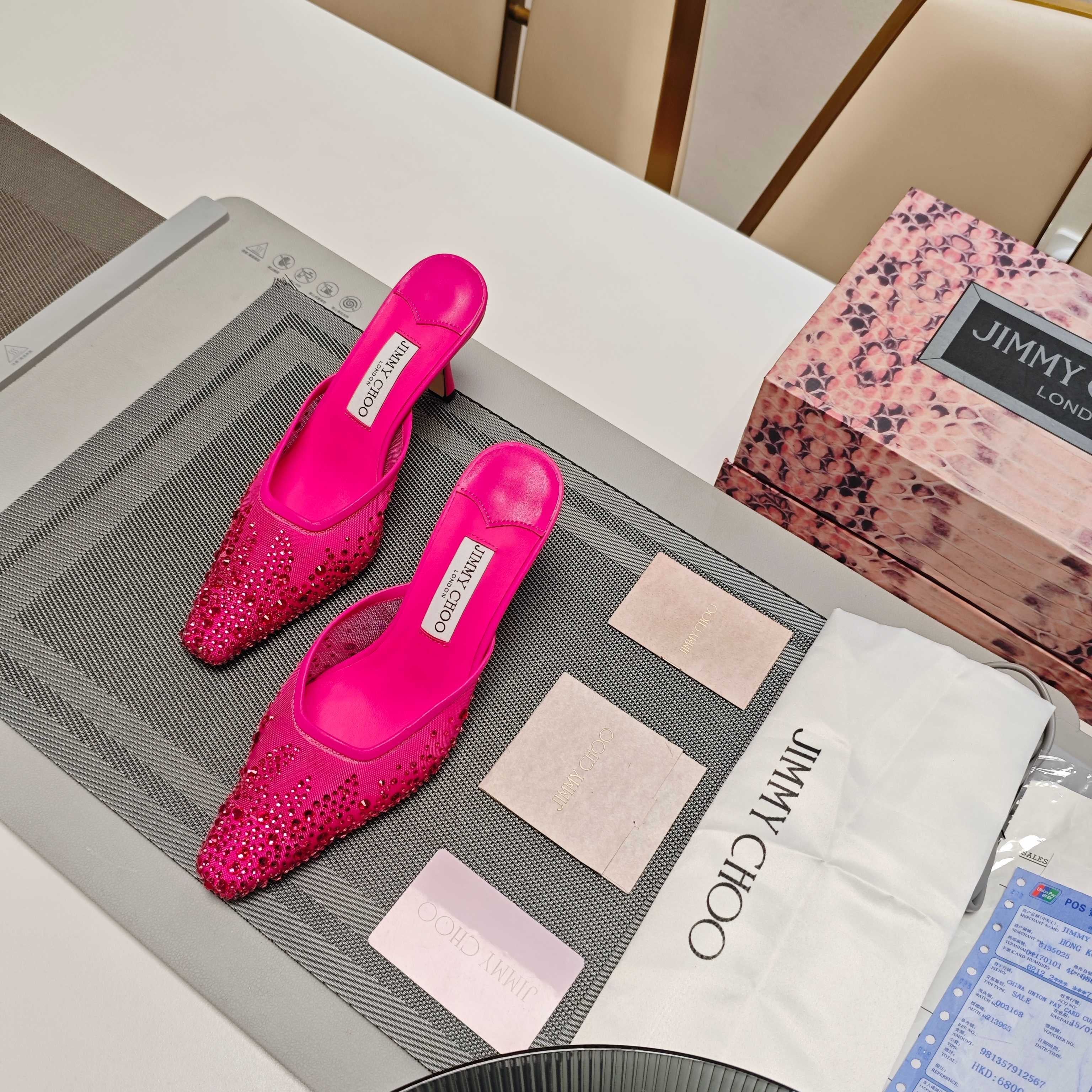 Jimmy 25 Vivi 100 Mule Deep Pink Mesh Gauze 240054