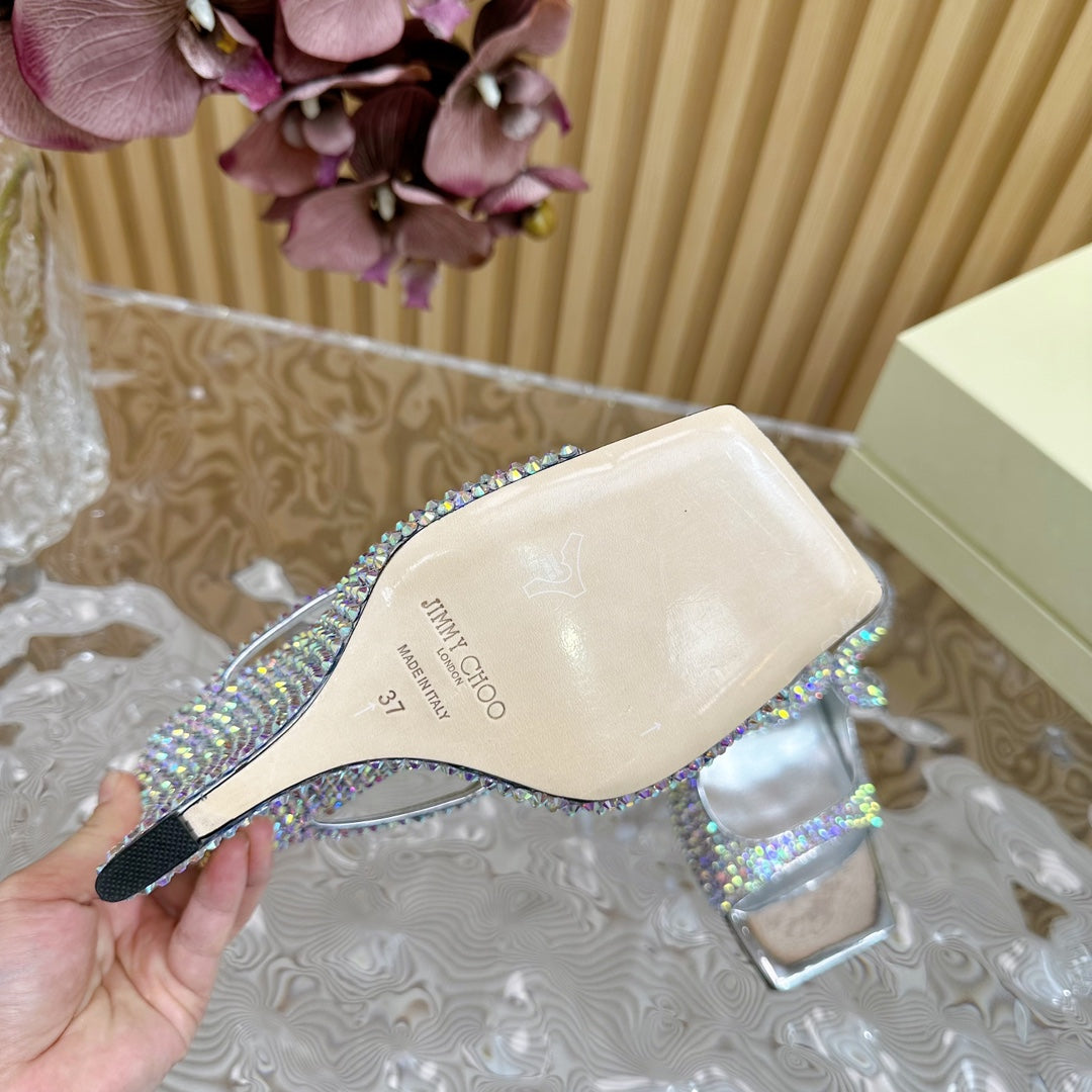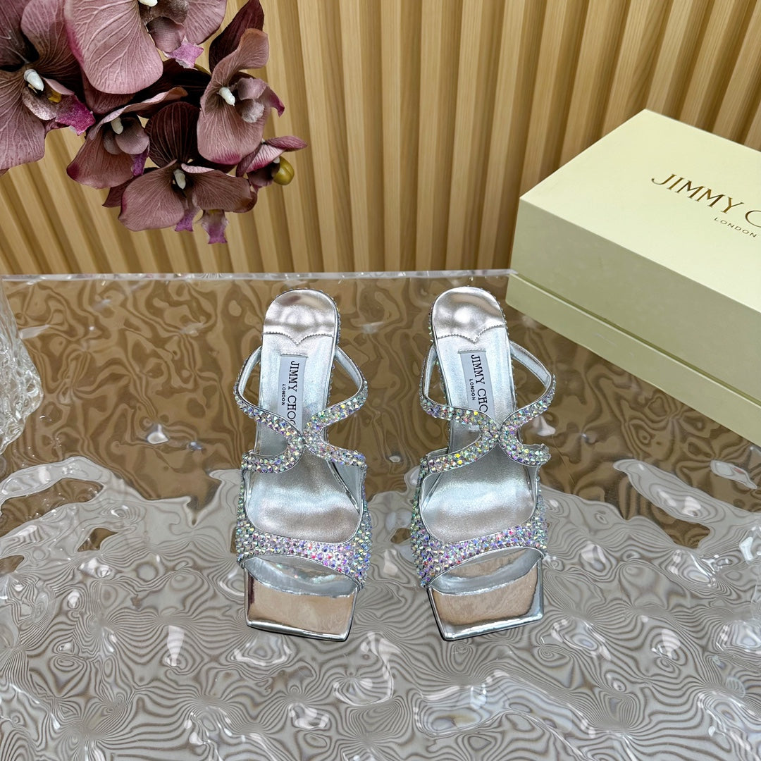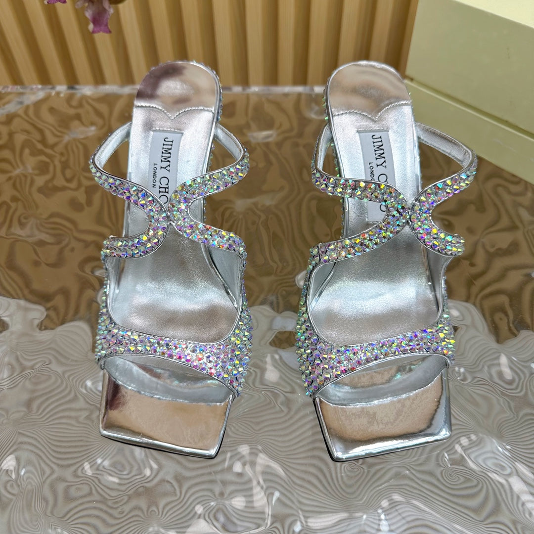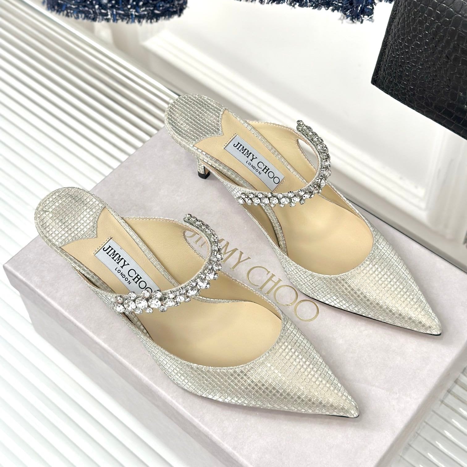 Jimmy Anise 85 In Silver Cowhide With Glitter Mules 587698