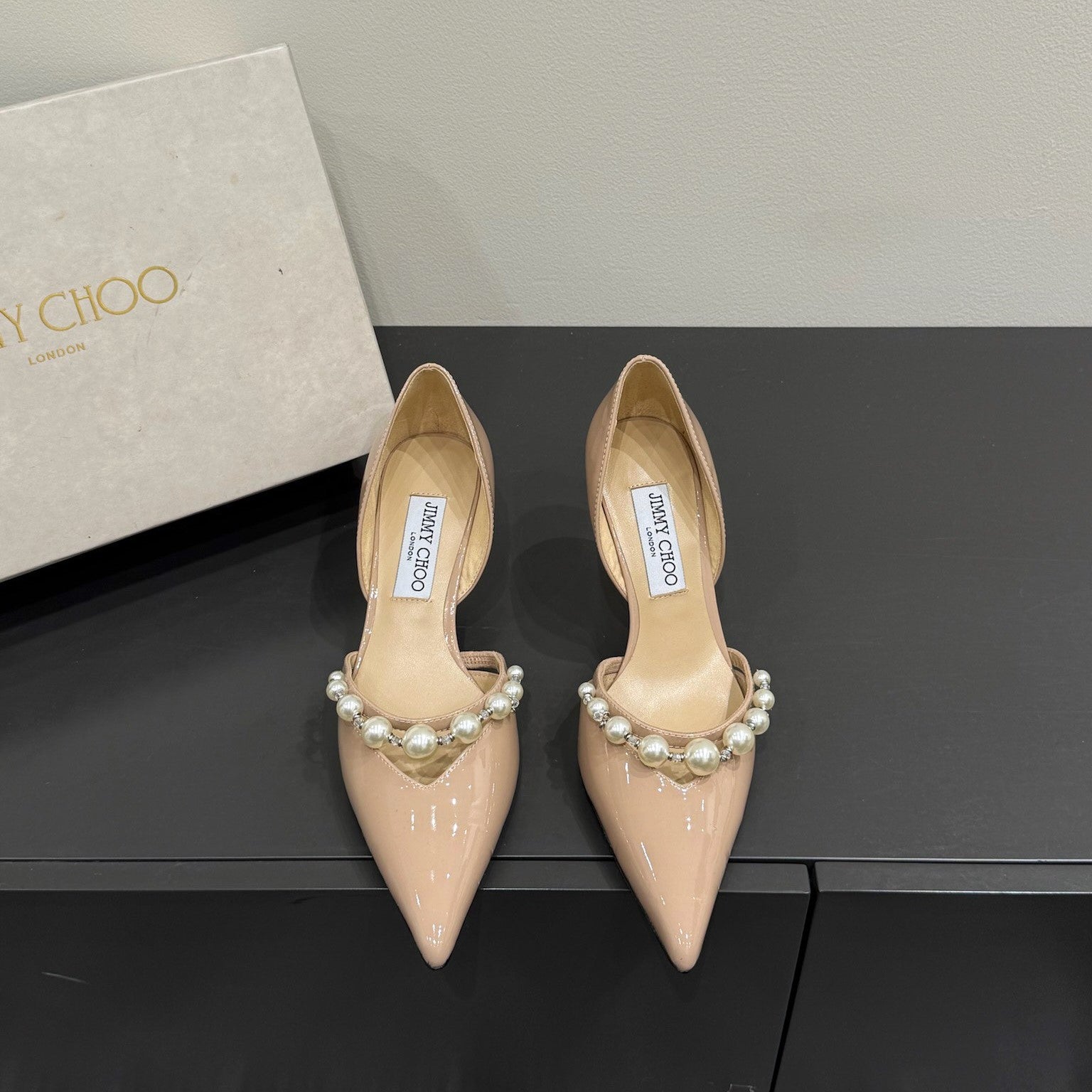 Jimmy Aureli Pearl-embellished Pumps 65mm Beige Patent Leather 420138