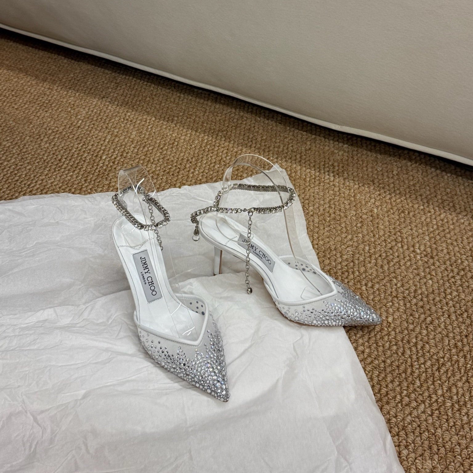Jimmy Crystal-embellished Saeda Pumps 100mm White Mesh Drill 420170