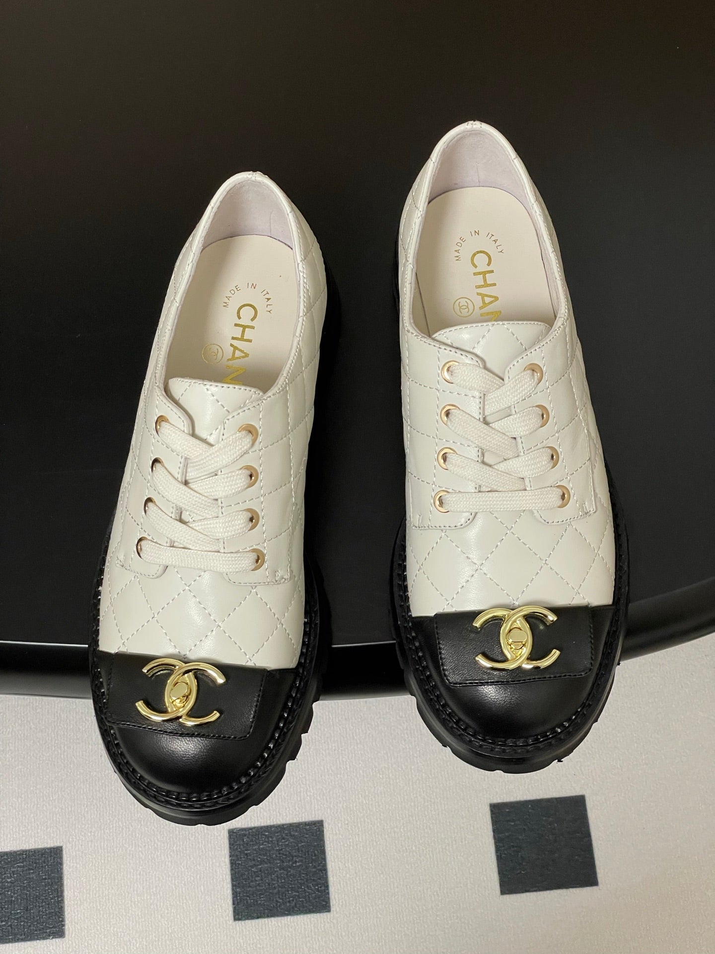 25K Double C Buckle Thick-Soled 25mm Loafer White Black Lambskin 247710