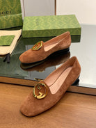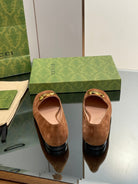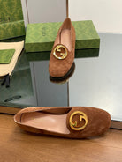 Blondie logo plaque loafers in bronze brown suede with gold hardware
