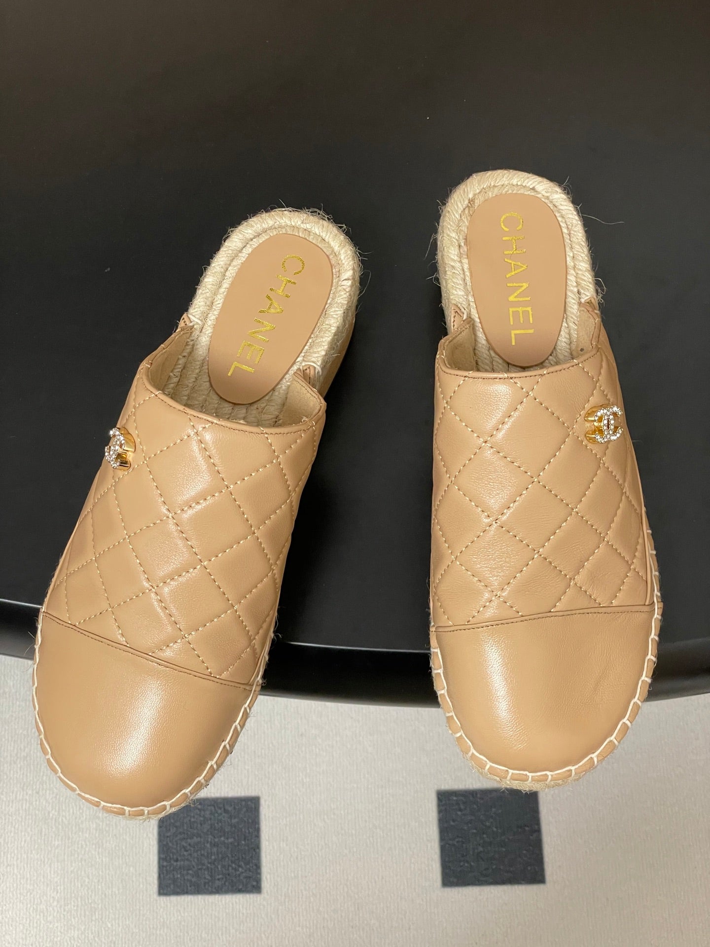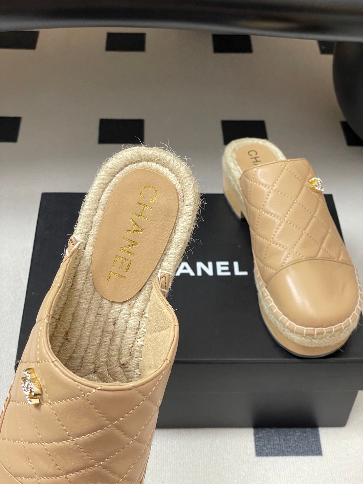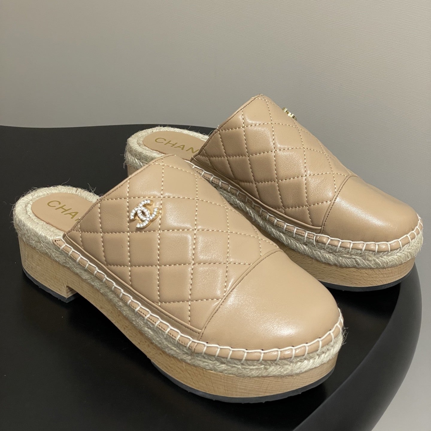CC 25A Clog Slippers 40mm Beige Quilted Lambskin 393949
