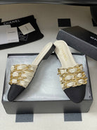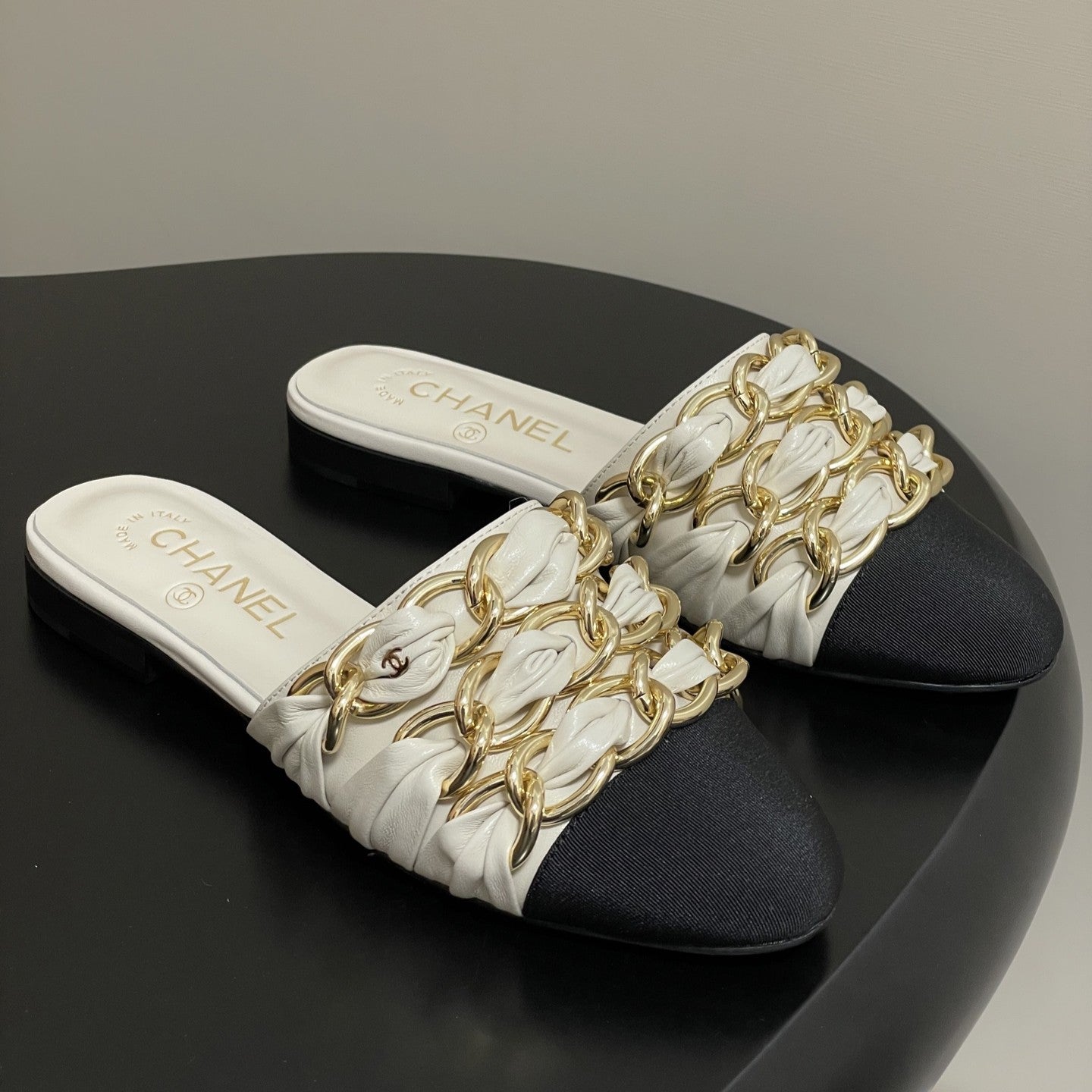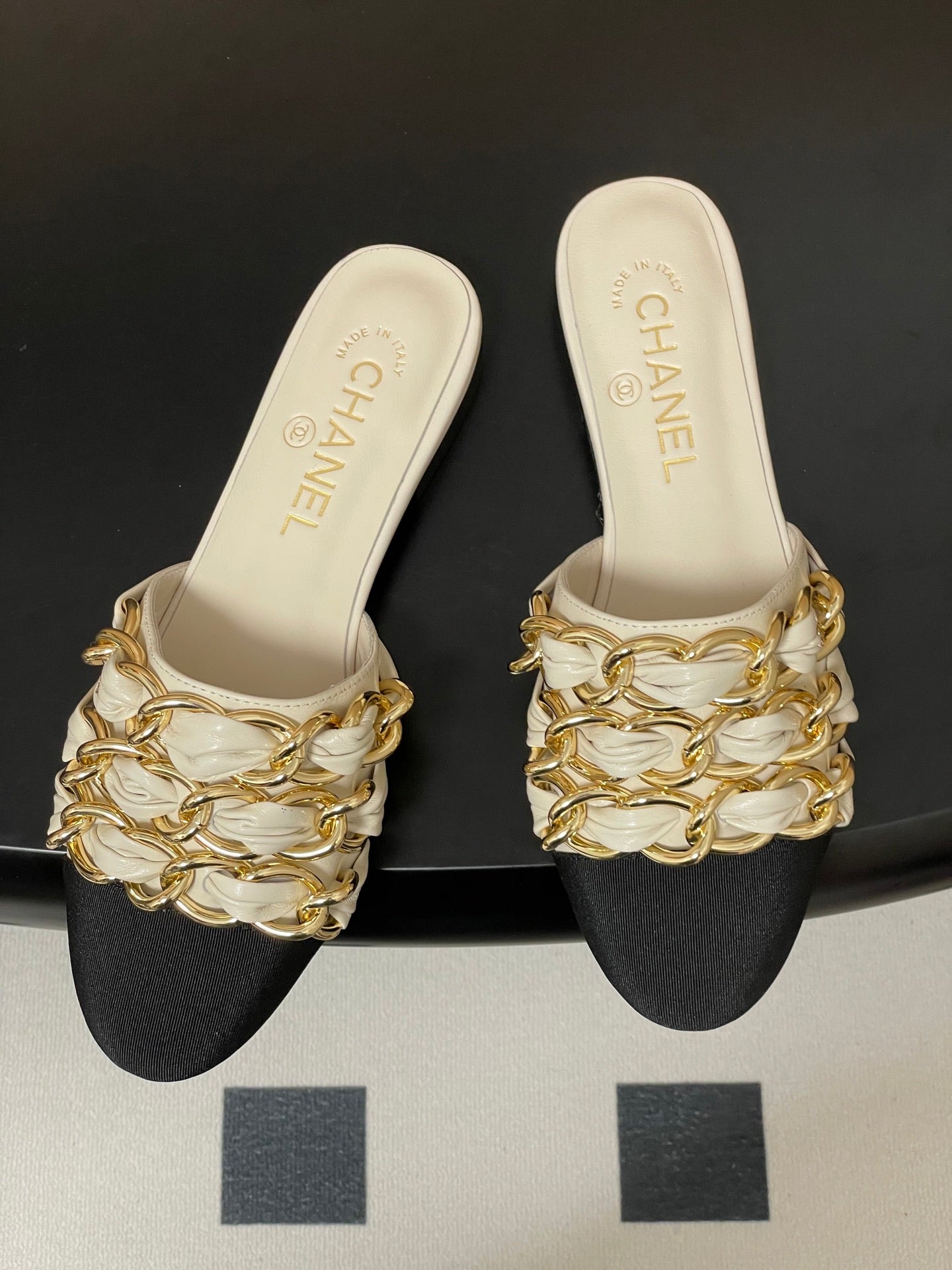 CC 25B Chain Closed Toe Flat Mule Ivory Sheepskin 393889