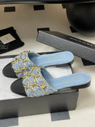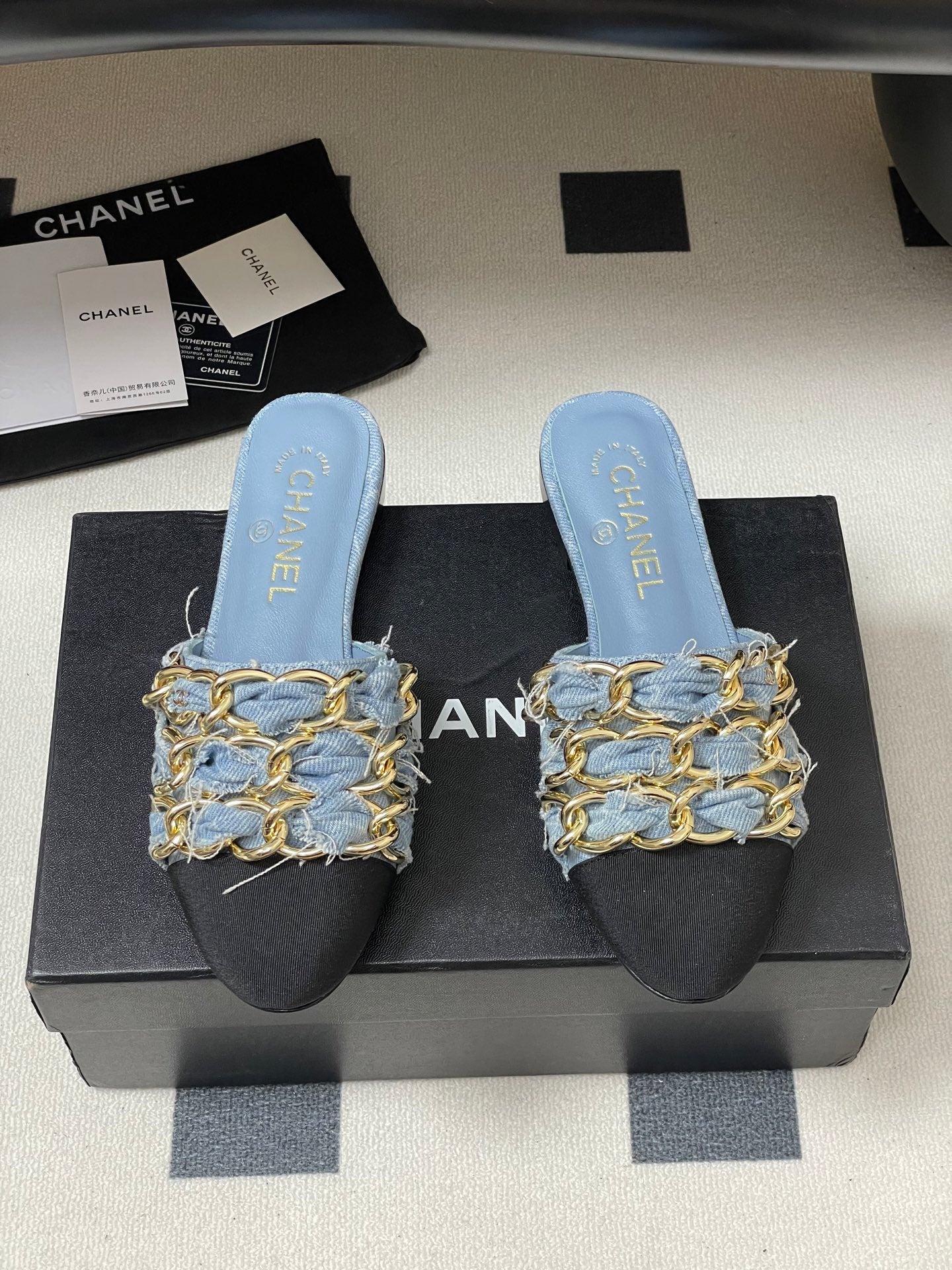 CC 25B Chain Closed Toe Flat Mule Light Blue Denim 393887