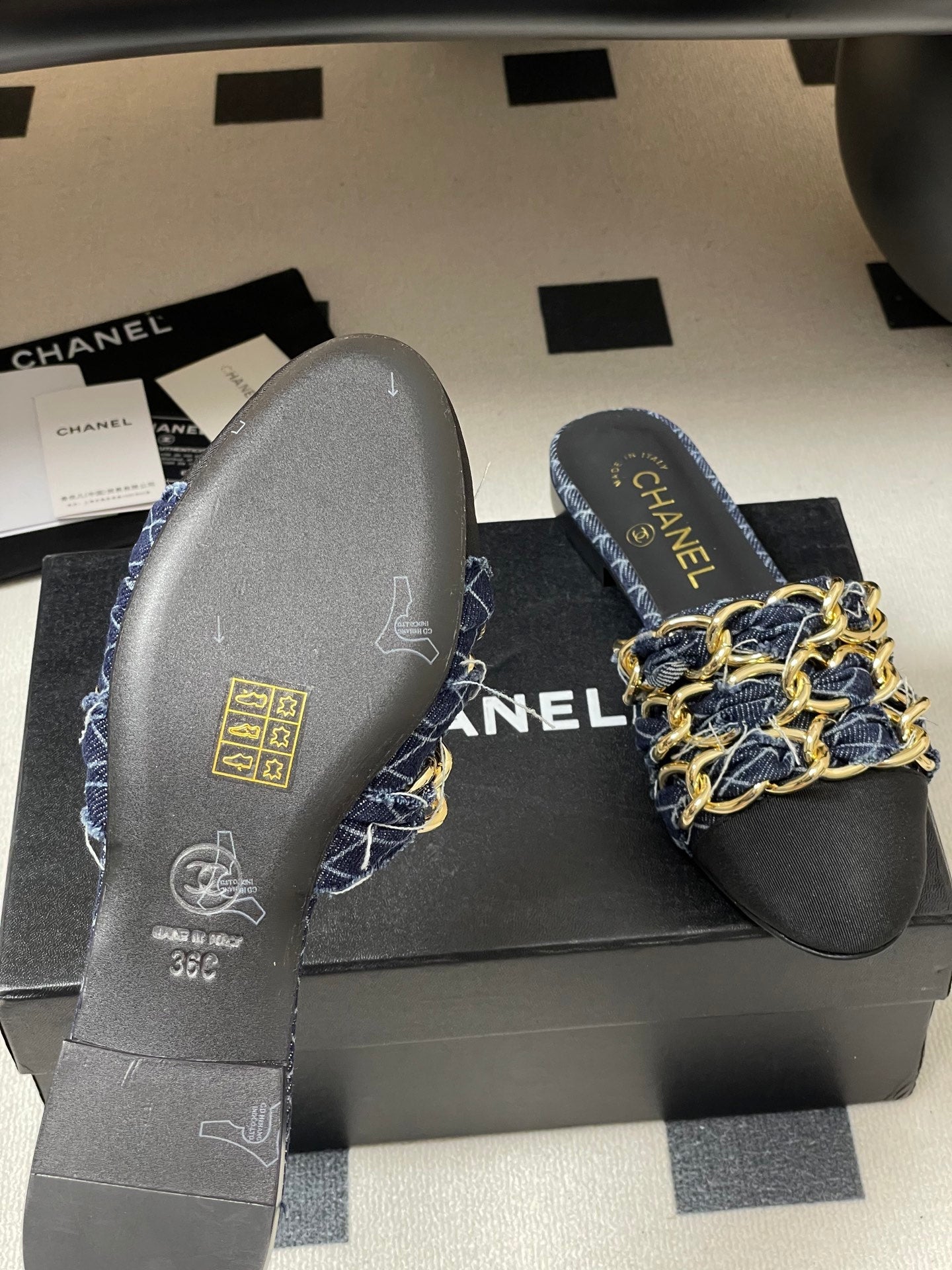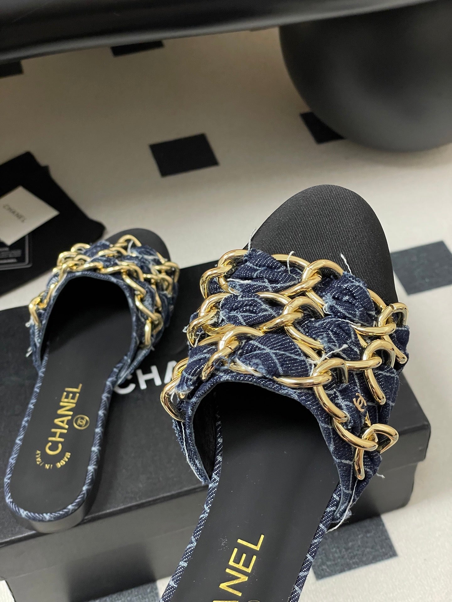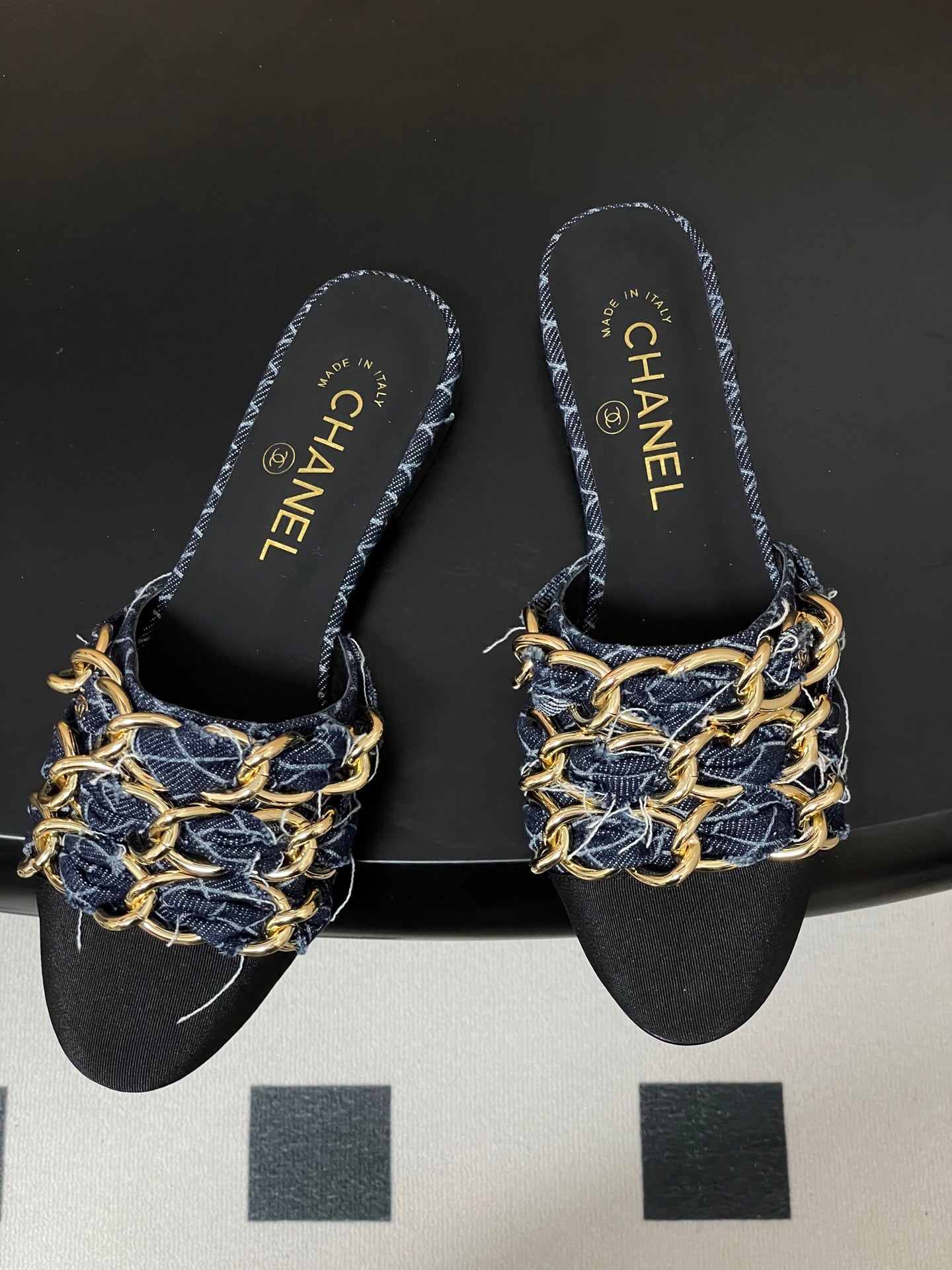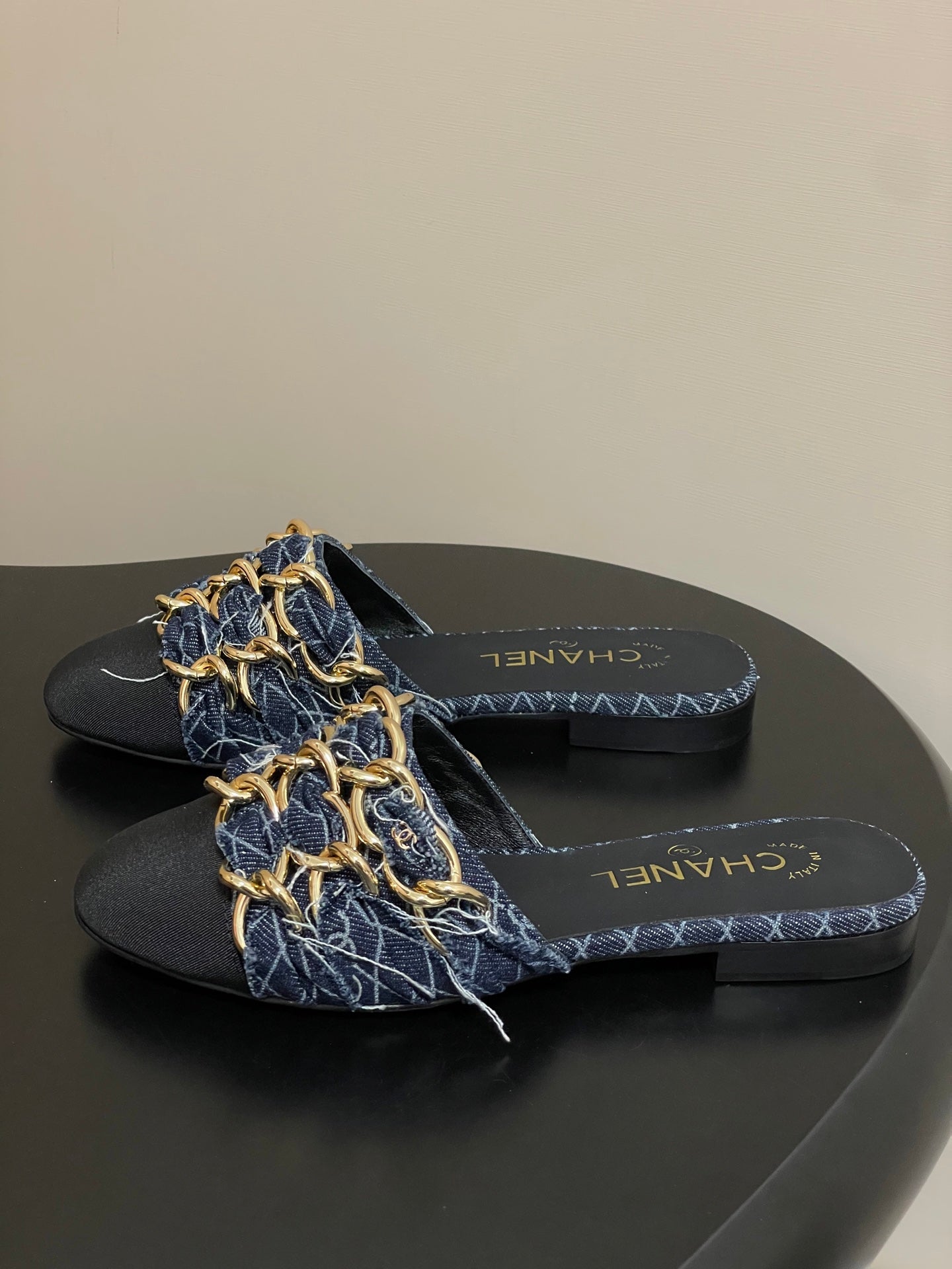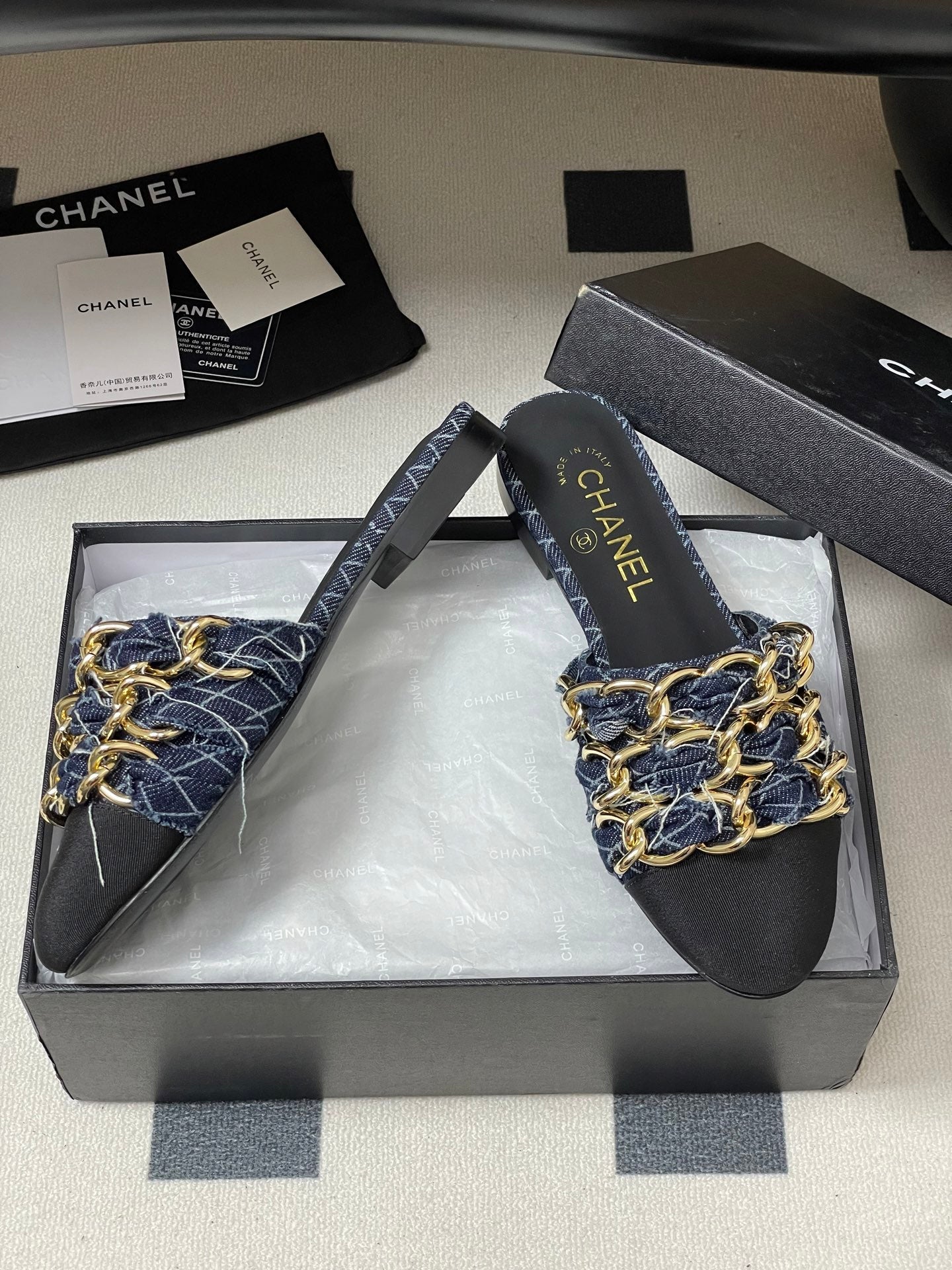 CC 25B Chain Closed Toe Flat Mule Navy Blue Denim 393886