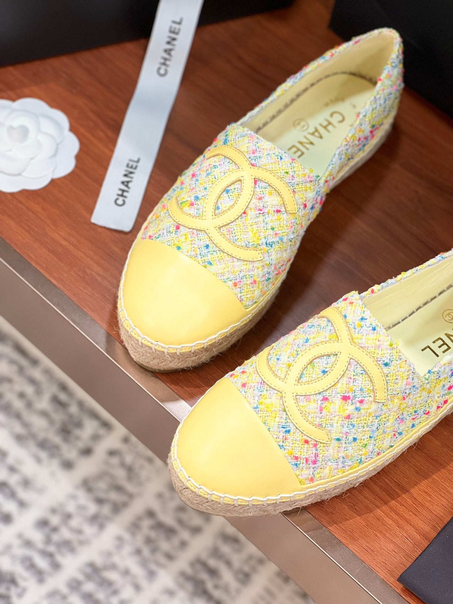 cc espadrilles multicolor tweed lime calfskin