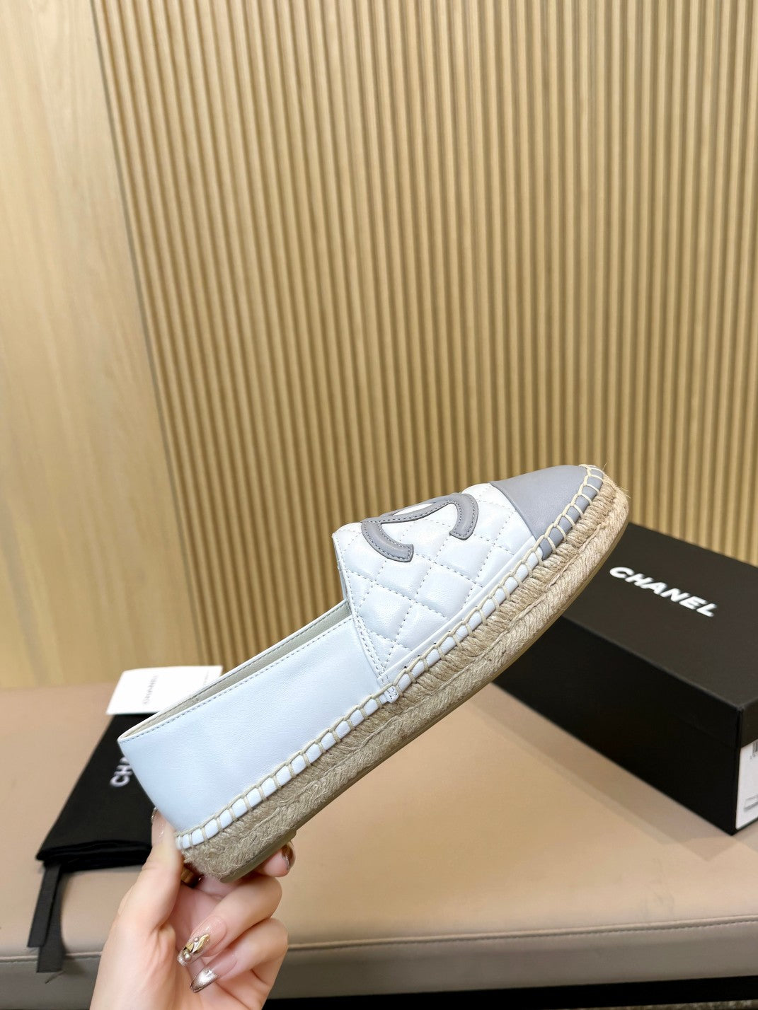 cc espadrilles white grey quilted caflskin