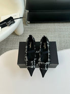 CC MARY JANE IN BLACK MIX WHITE WOOL TWEED