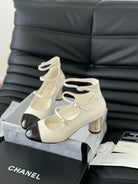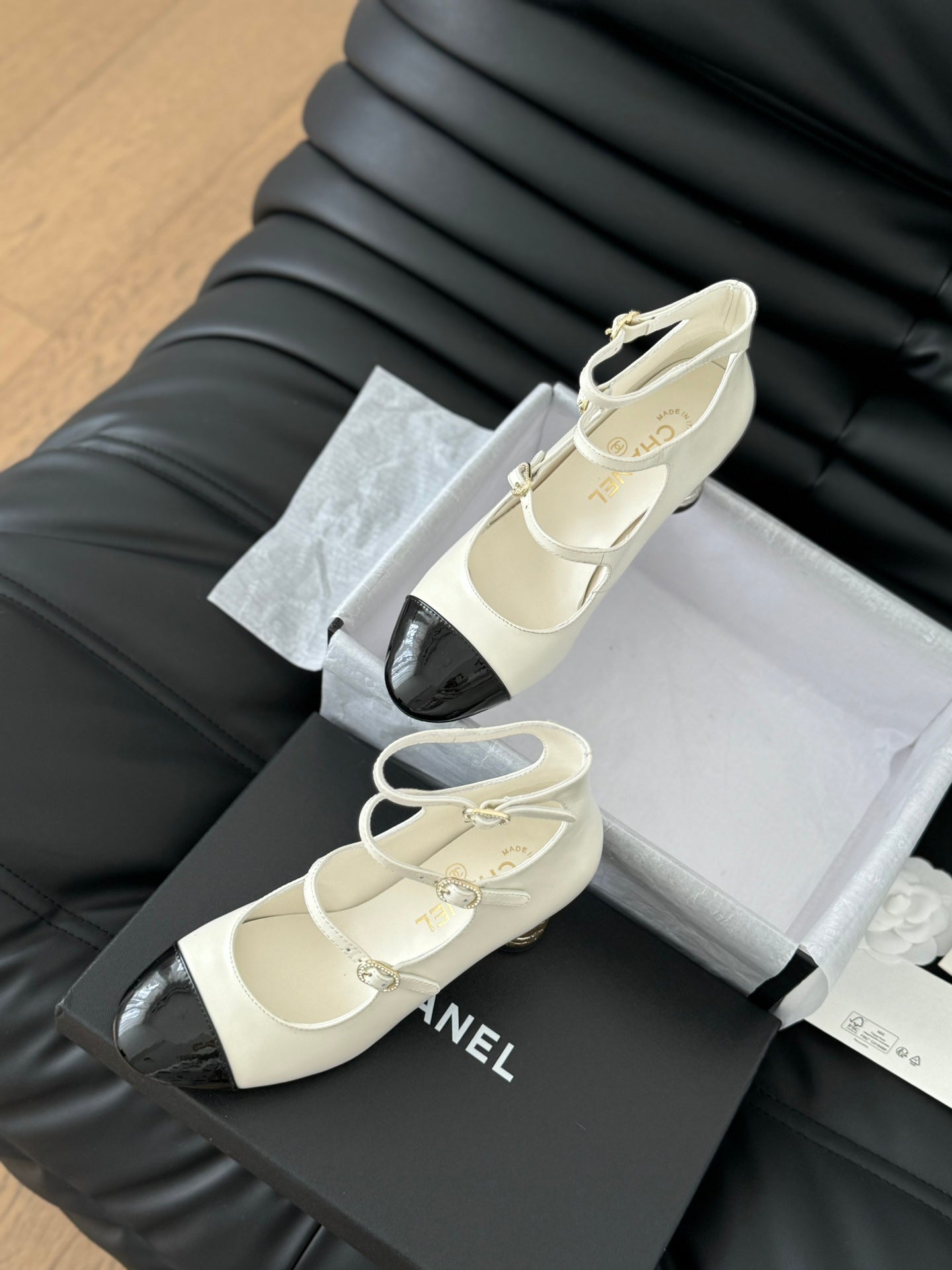 CC MARY JANE SHOES THREE STRAPS IN WHITE MIX BLACK LAMBSKIN