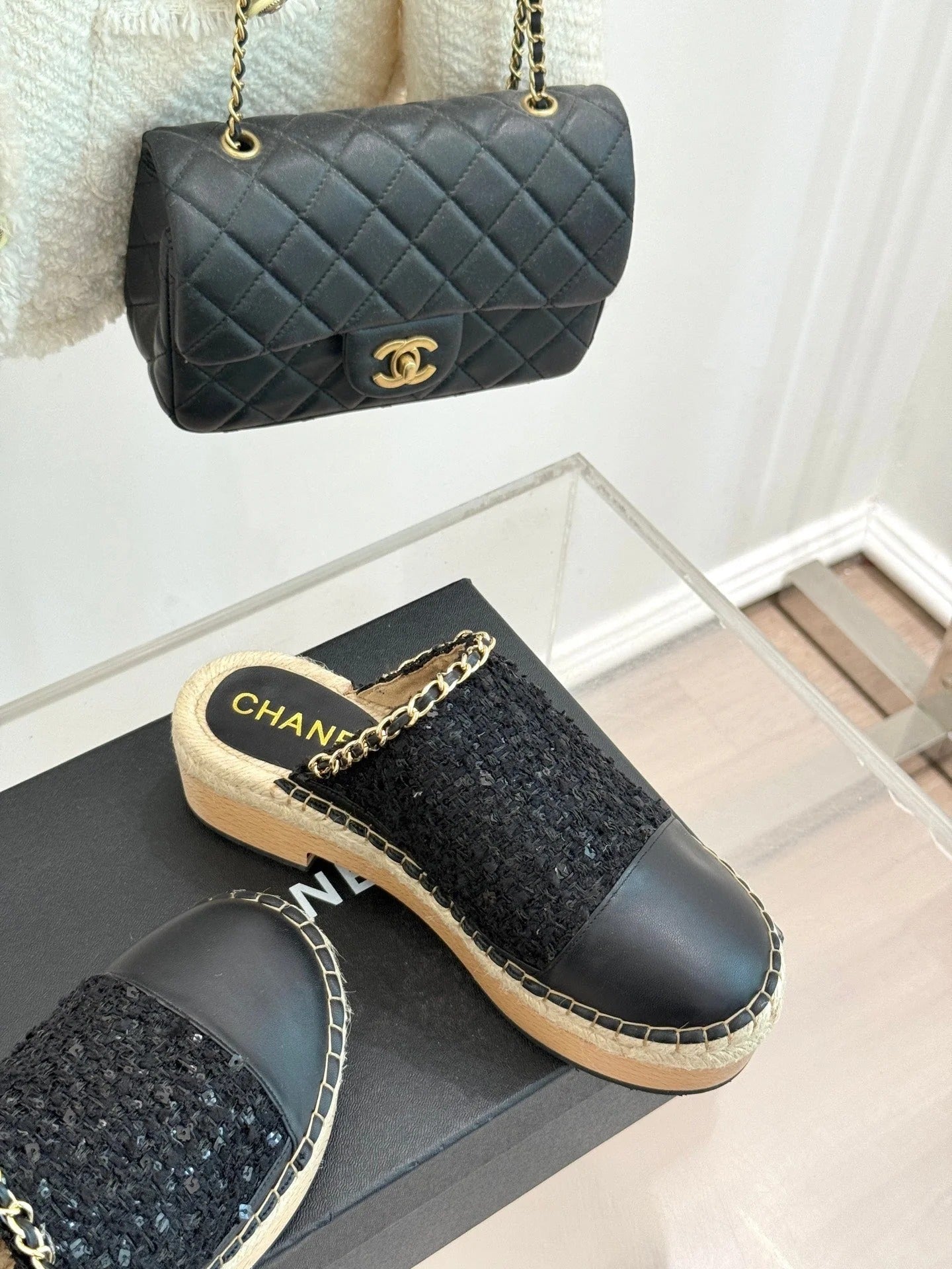 CC Mules 25ss 30 Mm In Black Lambskin Mix Tweed