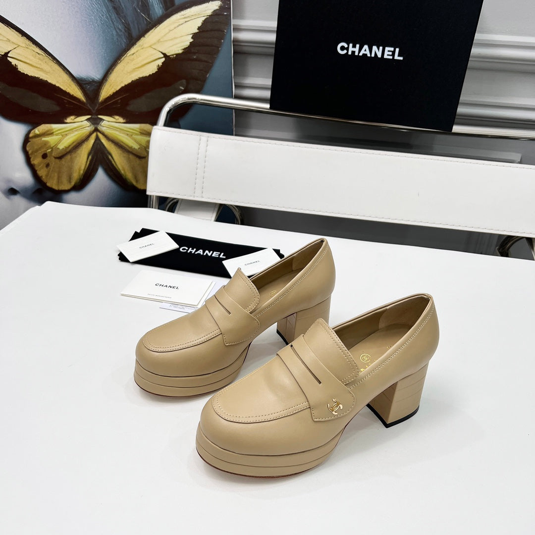 CC Platform Loafers 70mm Light Beige Sheepskin 459435