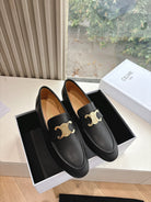 CELINE Buckle Triomphe Loafers Black Leather 285958