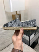 ESPADRILLE BLACK MIX WHITE TWEED FABRIC AND CALFSKIN FLATS 185046