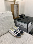 ESPADRILLE WHITE MIX BLACK TWEED FABRIC FLATS