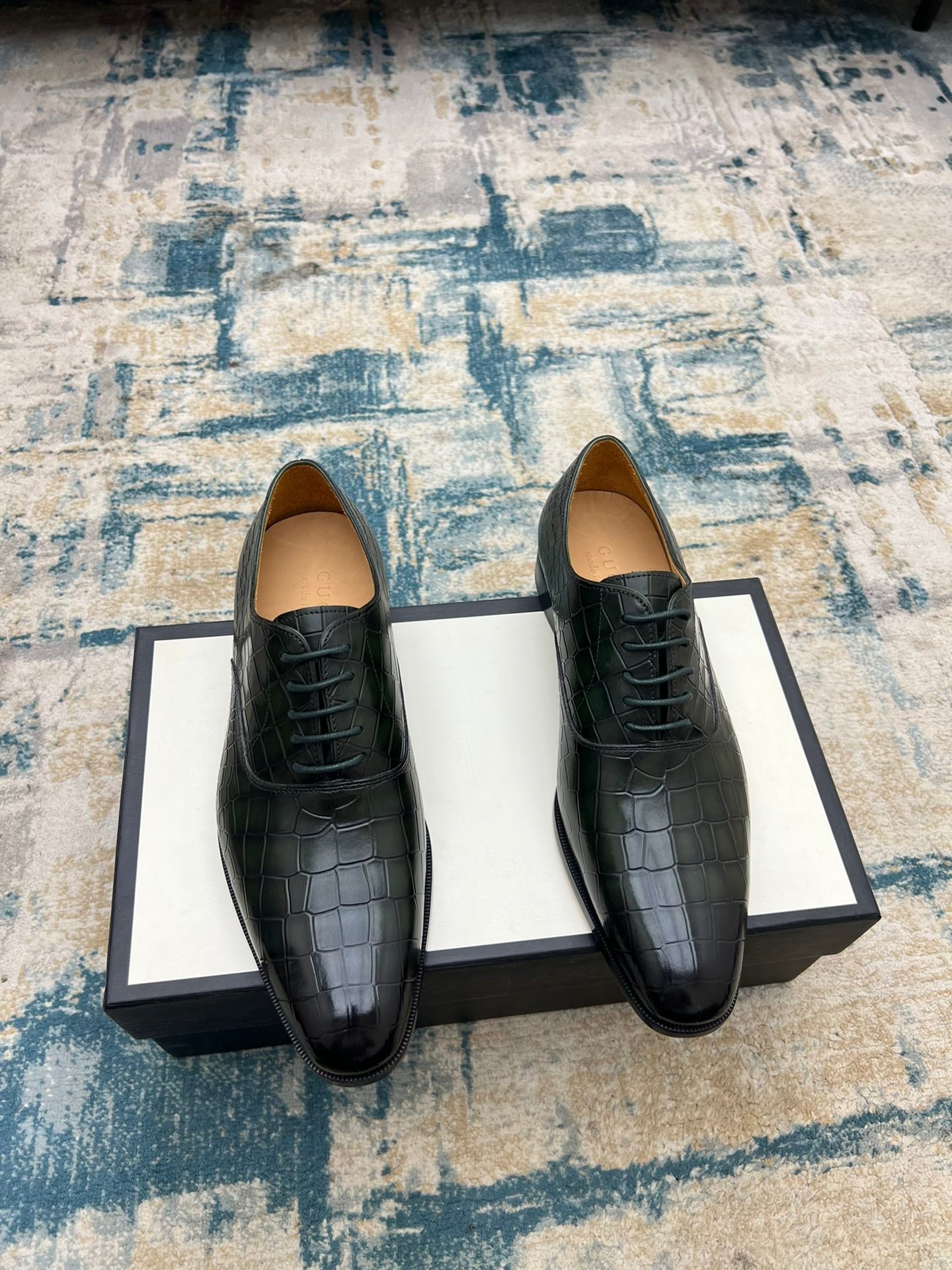 GG Men's Dress Shoe Dark Green Crocodile Embossed Calfskin 533109