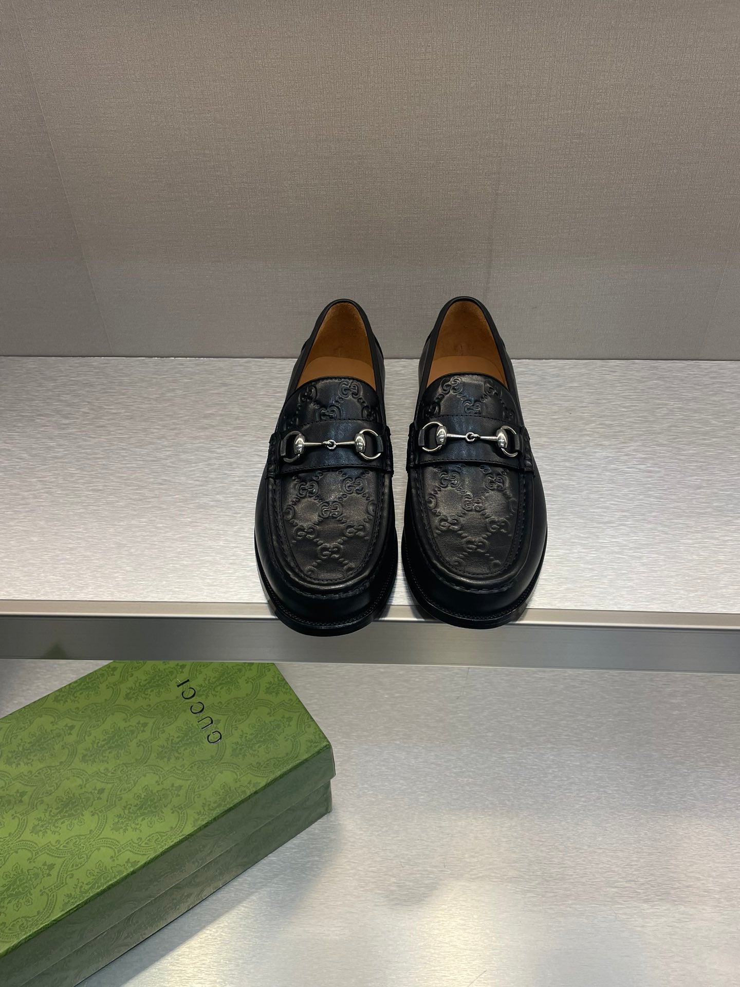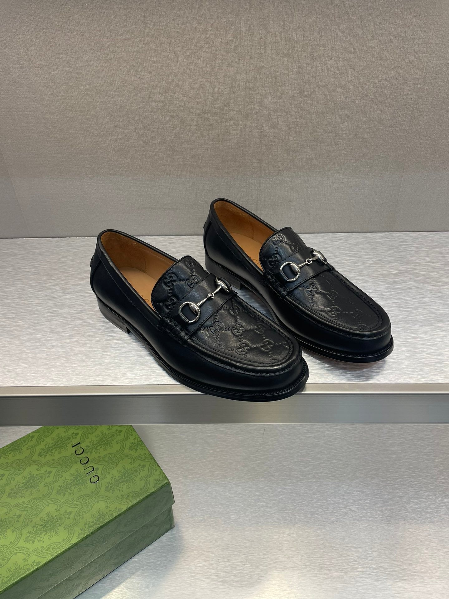 GG Men's Horsebit Loafer Black Embossed Cowhide 542447