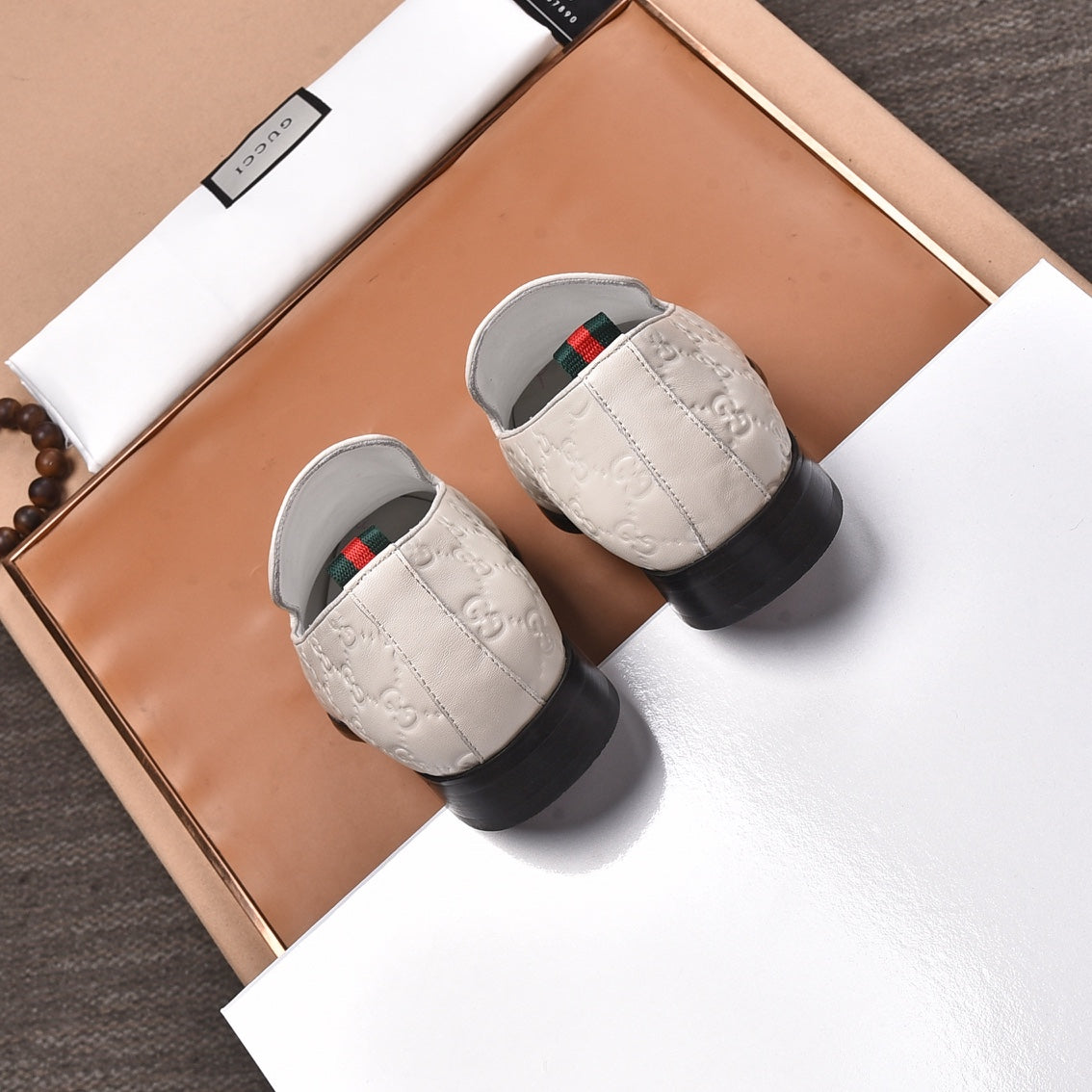 GG Men's Interlocking GG Loafer White Embossed Cowhide 480401