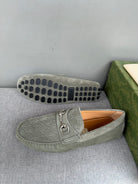 GG Men's Loafer Grey Embossed Suede 555382