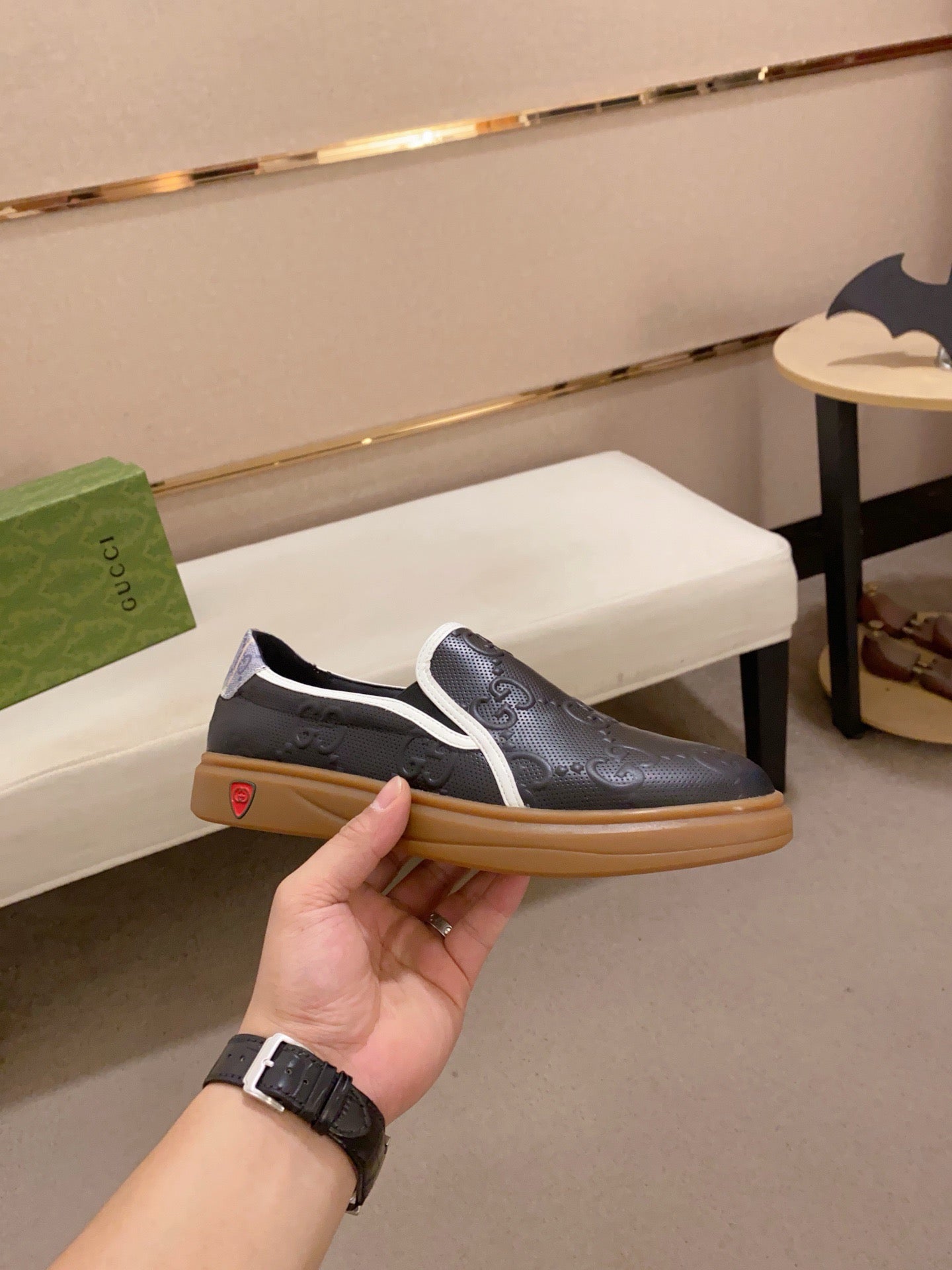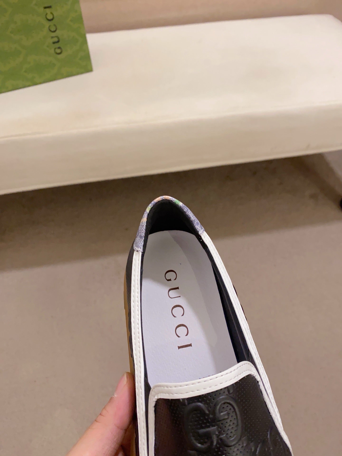 GG Men's Slip on Loafer Black Embossed Cowhide 533951