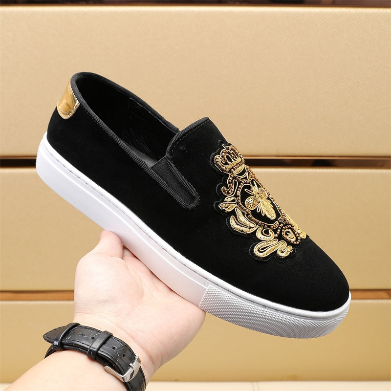 GG Men's Slip-on Loafers Black Gold Suede 545716